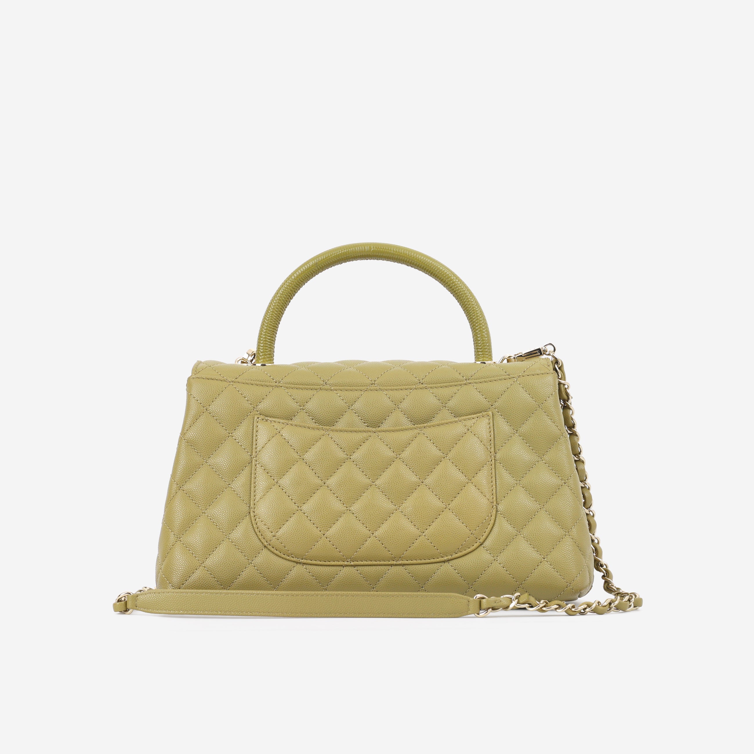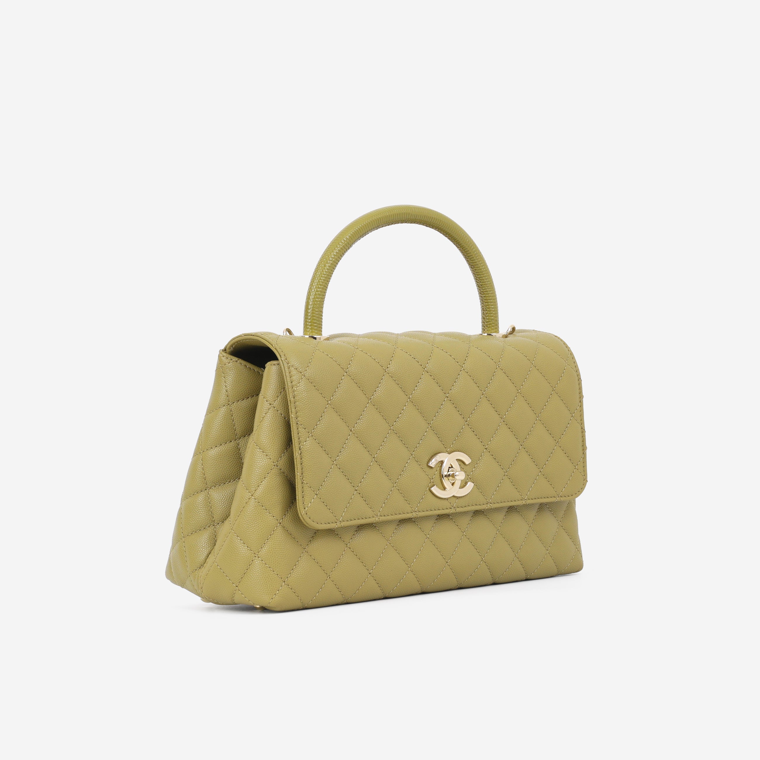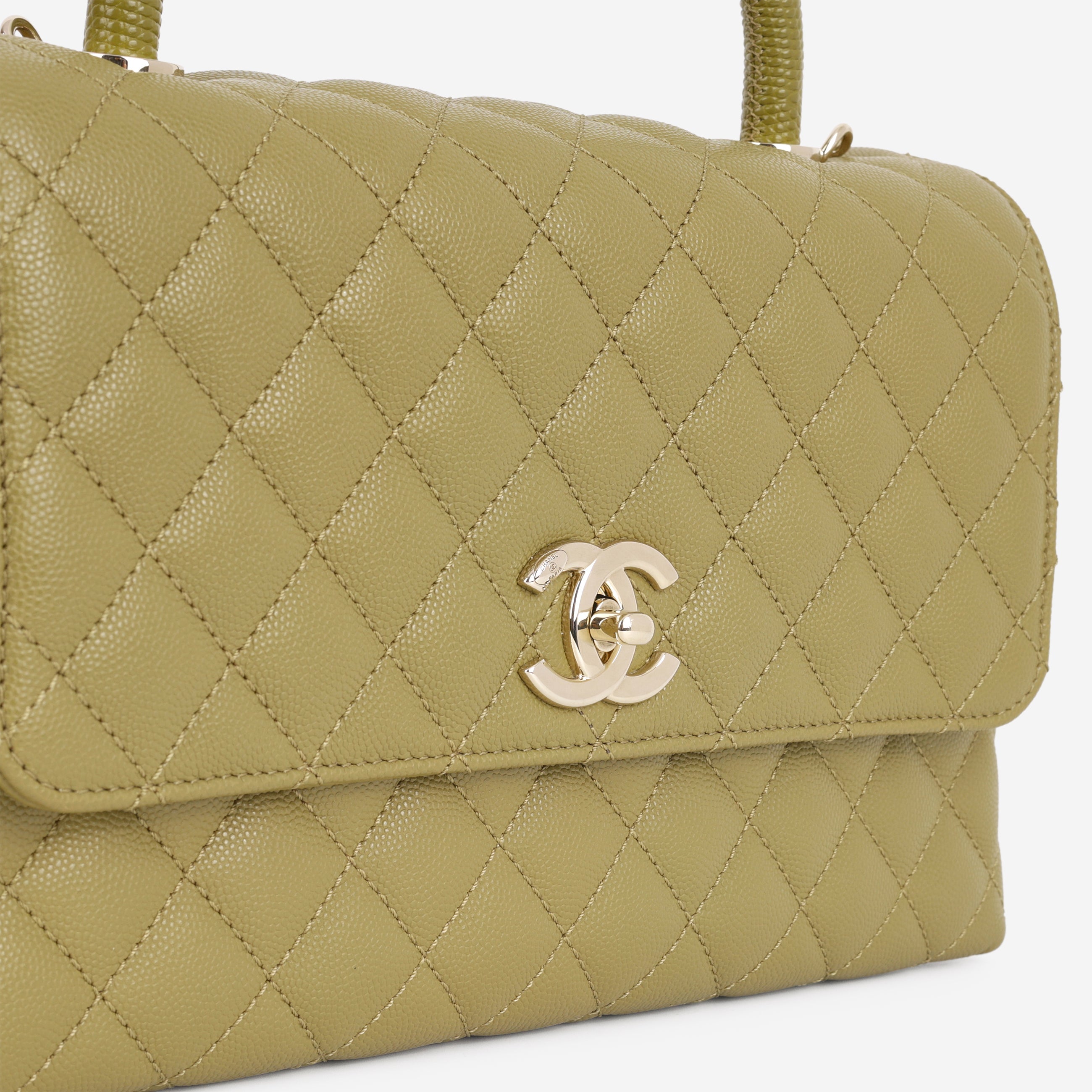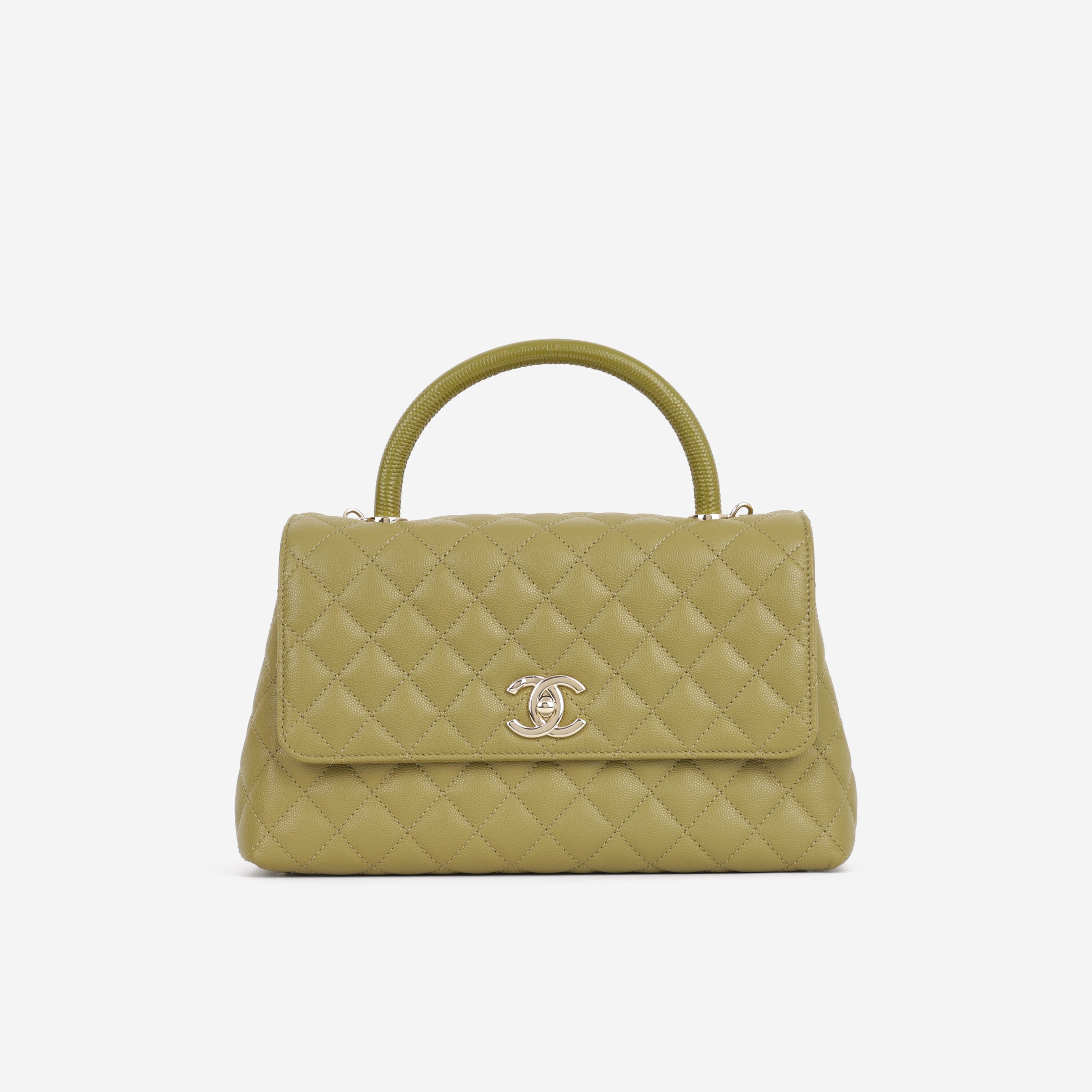 Chanel Medium Coco Handle - Olive Green Caviar | Champagne Gold Hardware