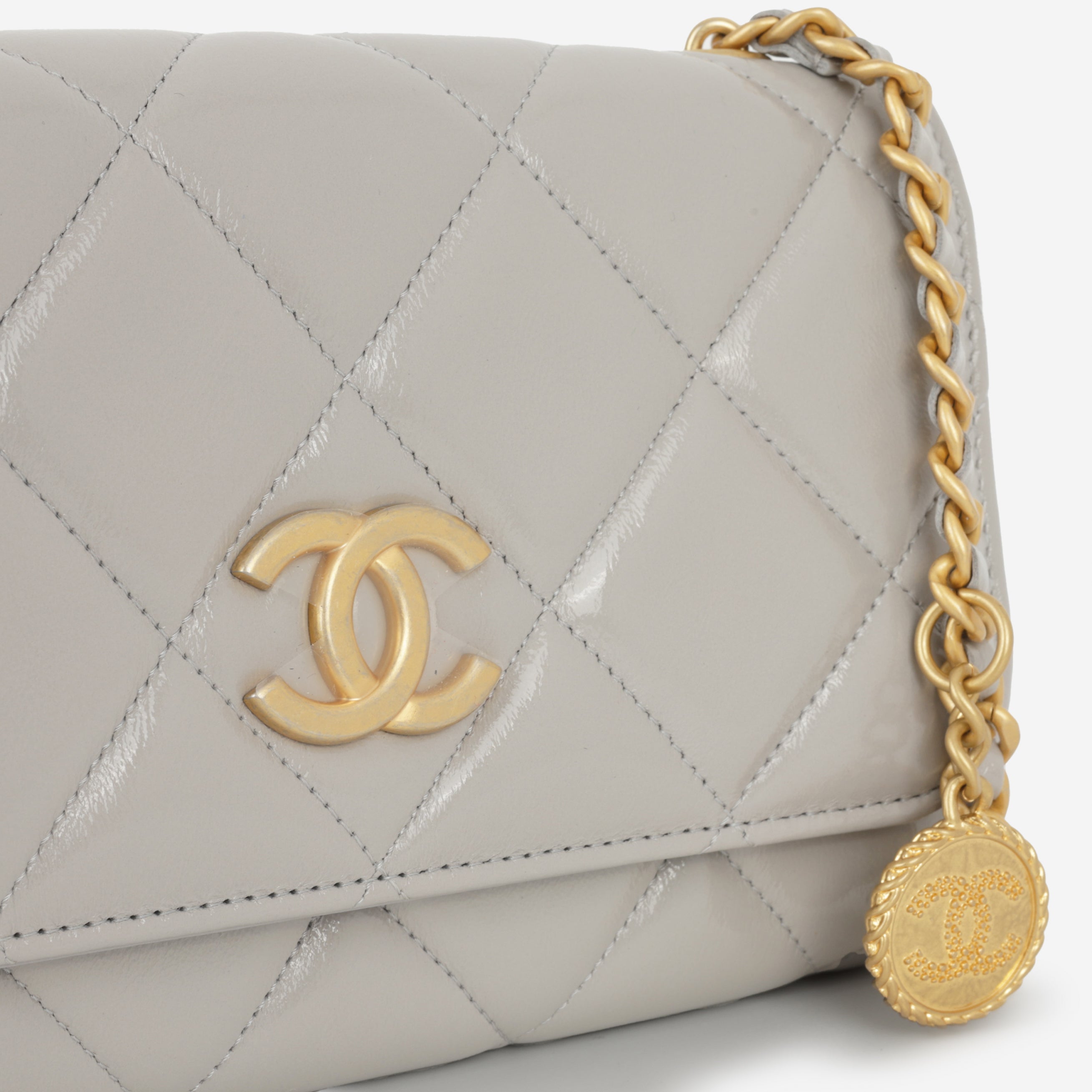 Chanel Seasonal Medallion WOC - Grey Patent | Gold Hardware