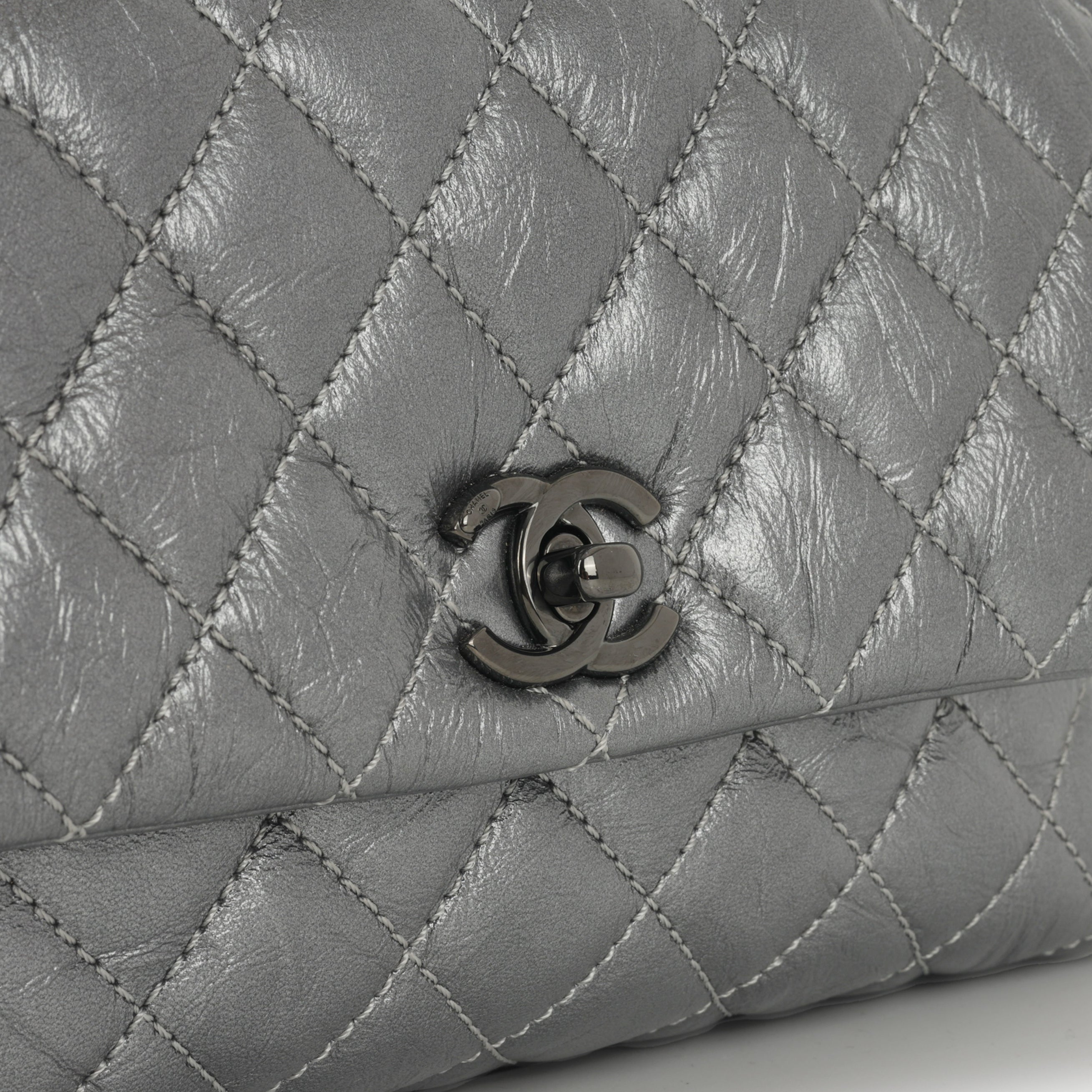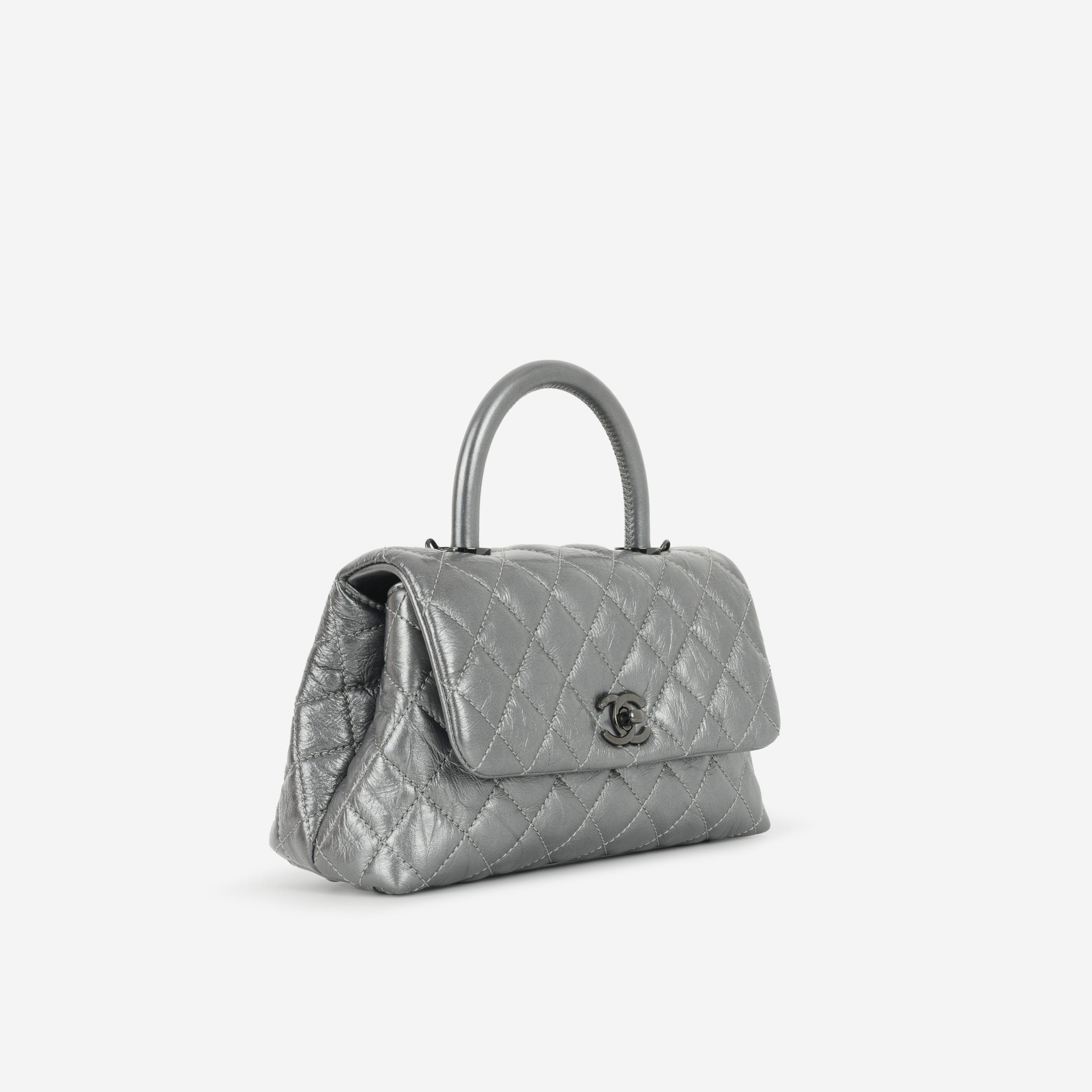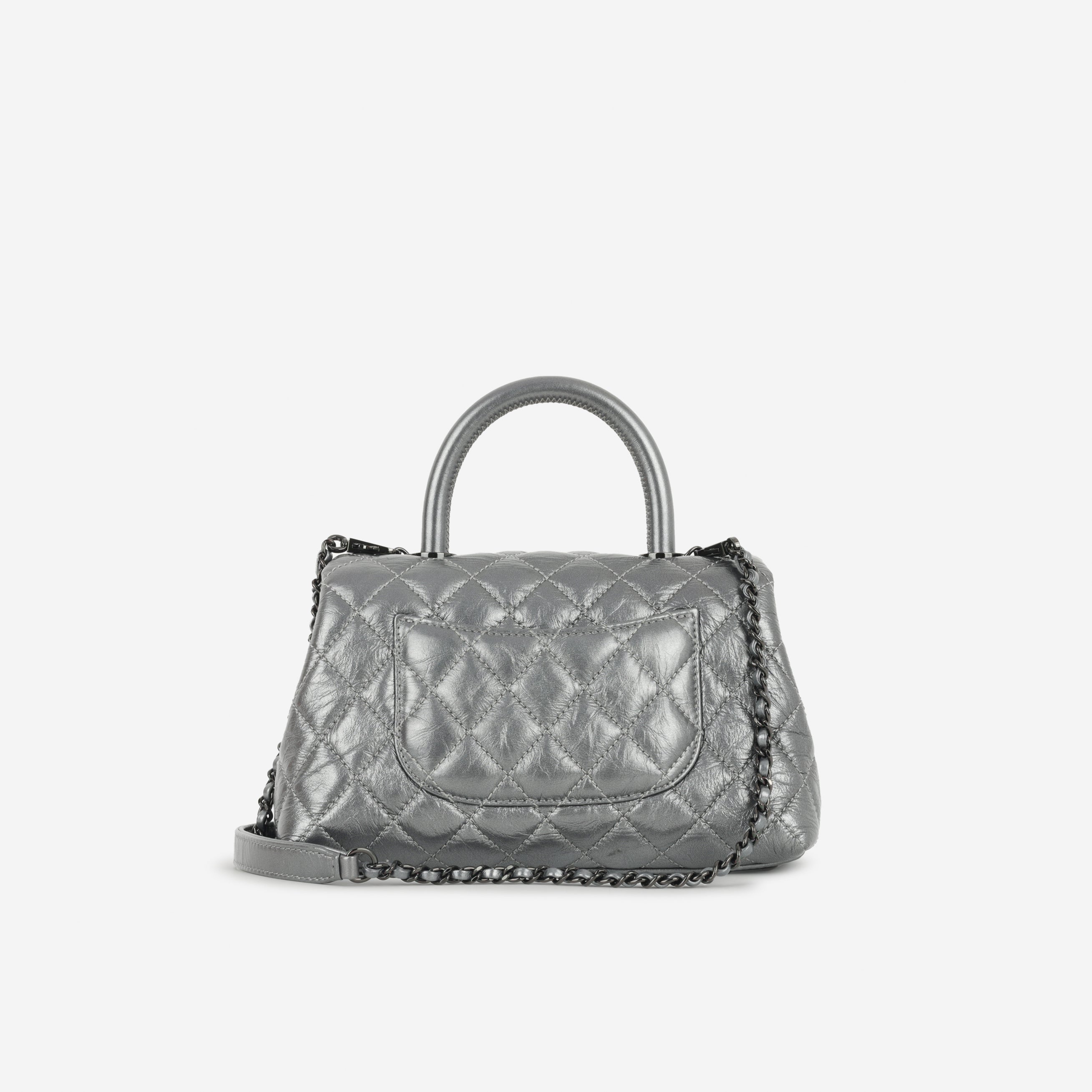 Chanel Small Coco Handle - Graphite Metallic Calfskin | Black Hardware