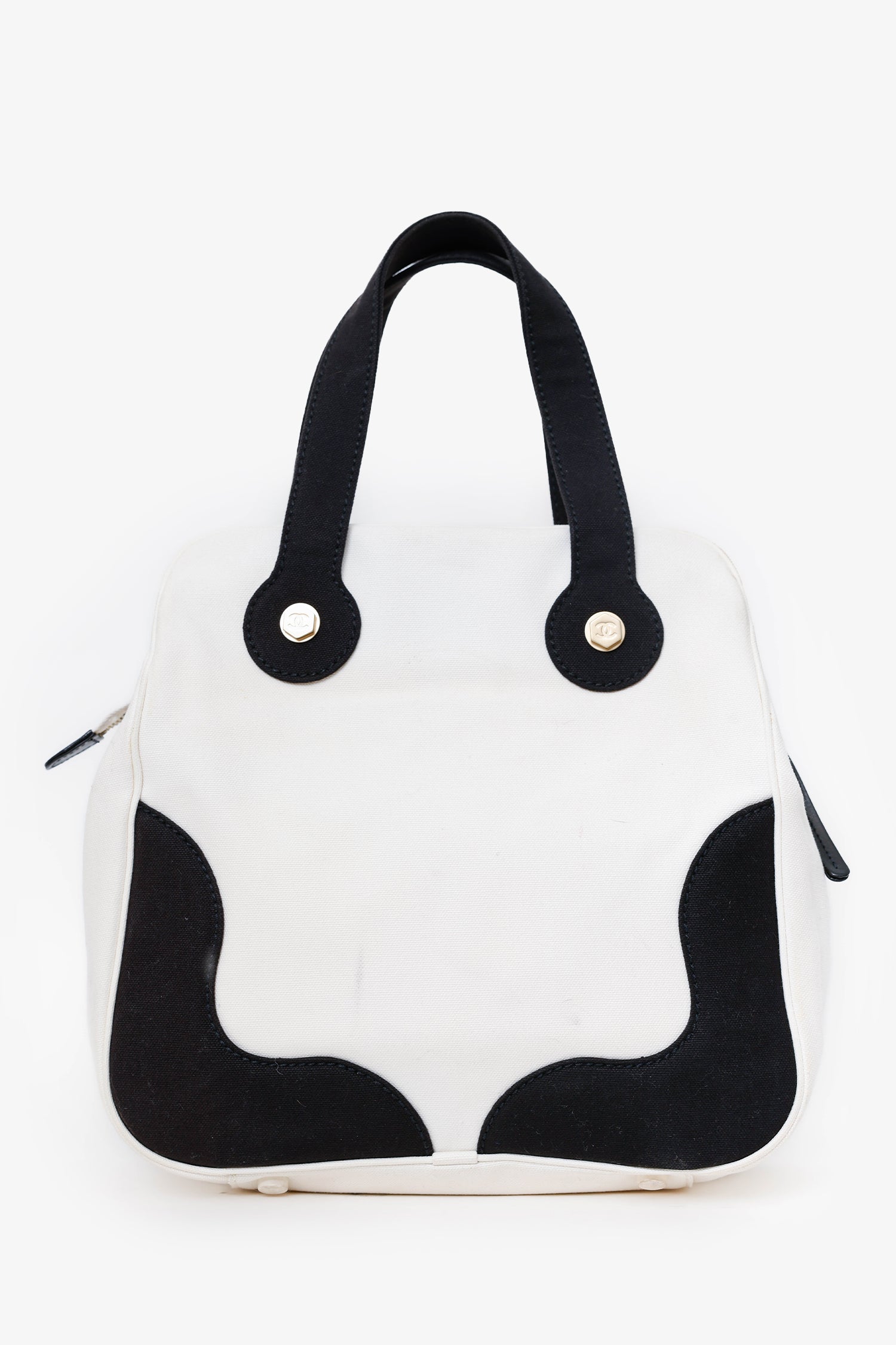 Pre-Loved Chanel™ 2003-04 Black/White Canvas Marshmallow CC Handle Bag