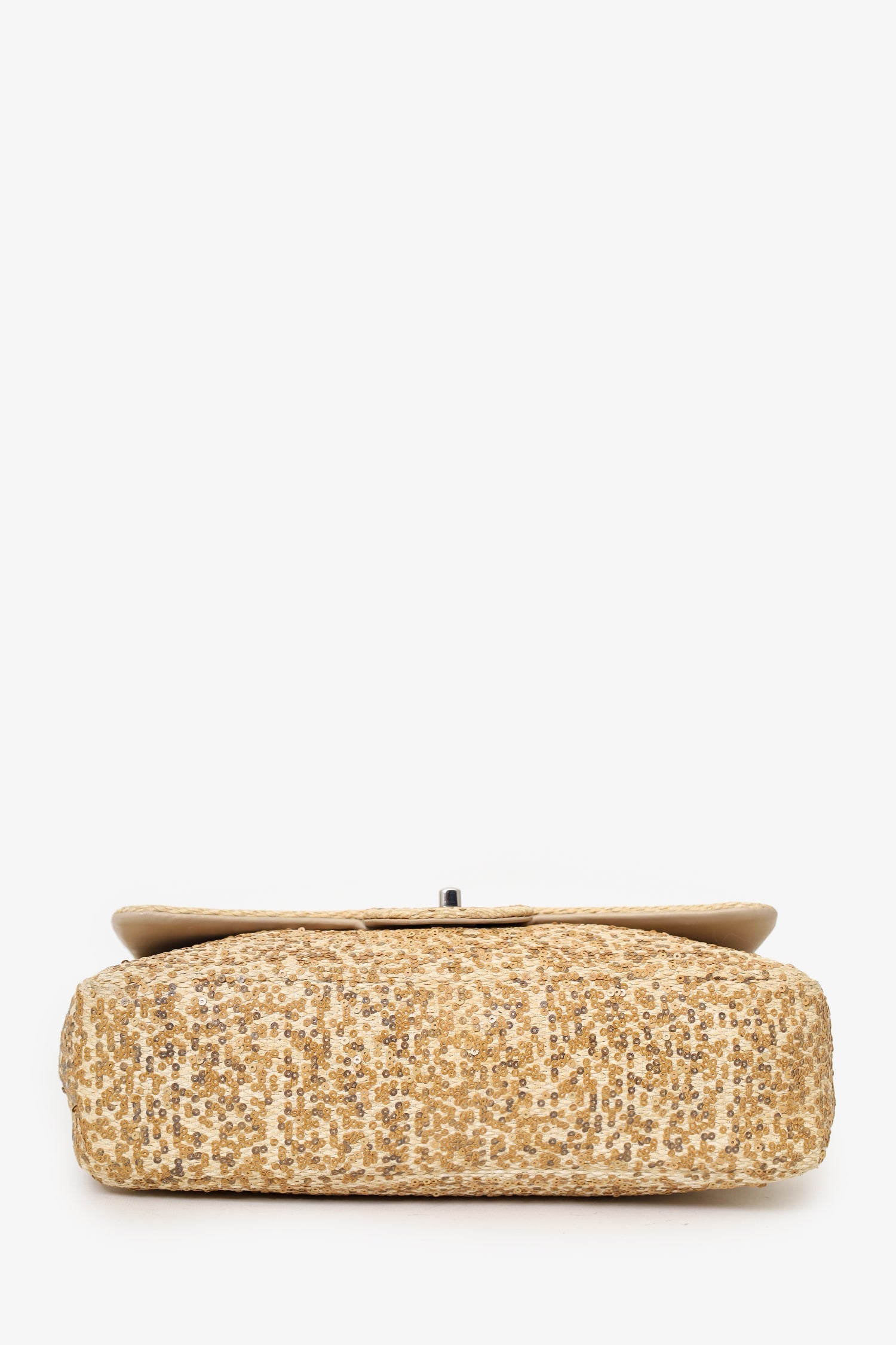 Pre-Loved Chanel™ 2013-14 Beige Raffia Sequin Small Single Flap Bag