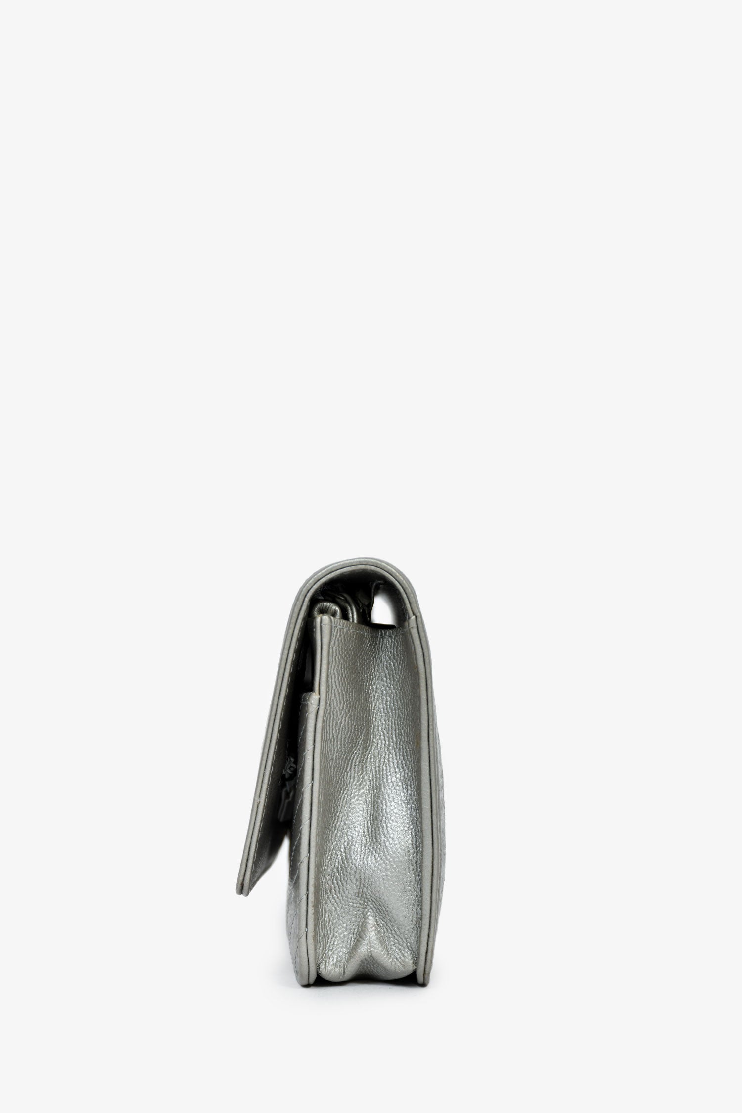 Pre-Loved Chanel™ 2016 Silver Metallic Caviar Leather Chevron Wallet on Chain