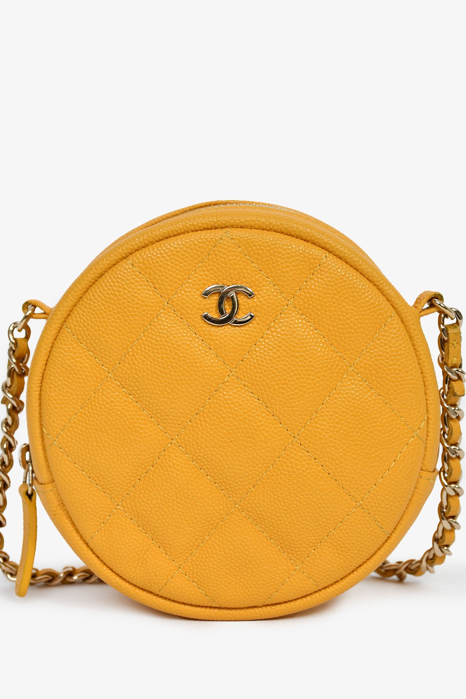 Pre-Loved Chanel™ 2018-19 Yellow Caviar Leather Round Chain Bag