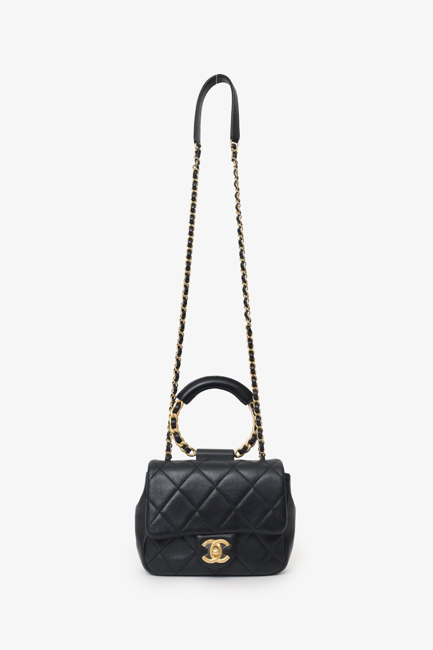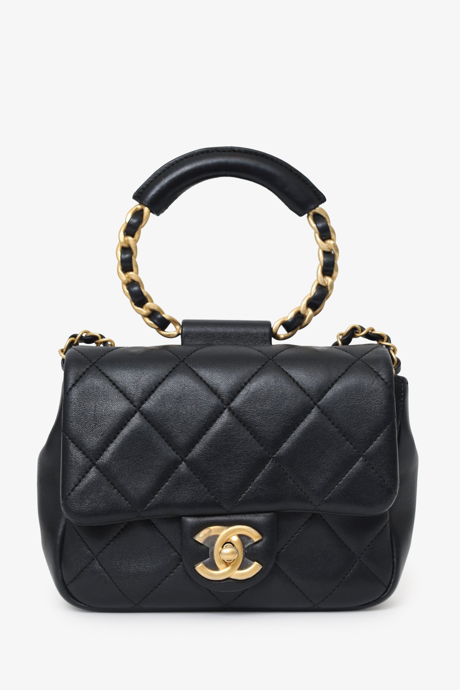 Chanel™ 2019 Black Lambskin Quilted Mini In The Loop Circular Handle Bag