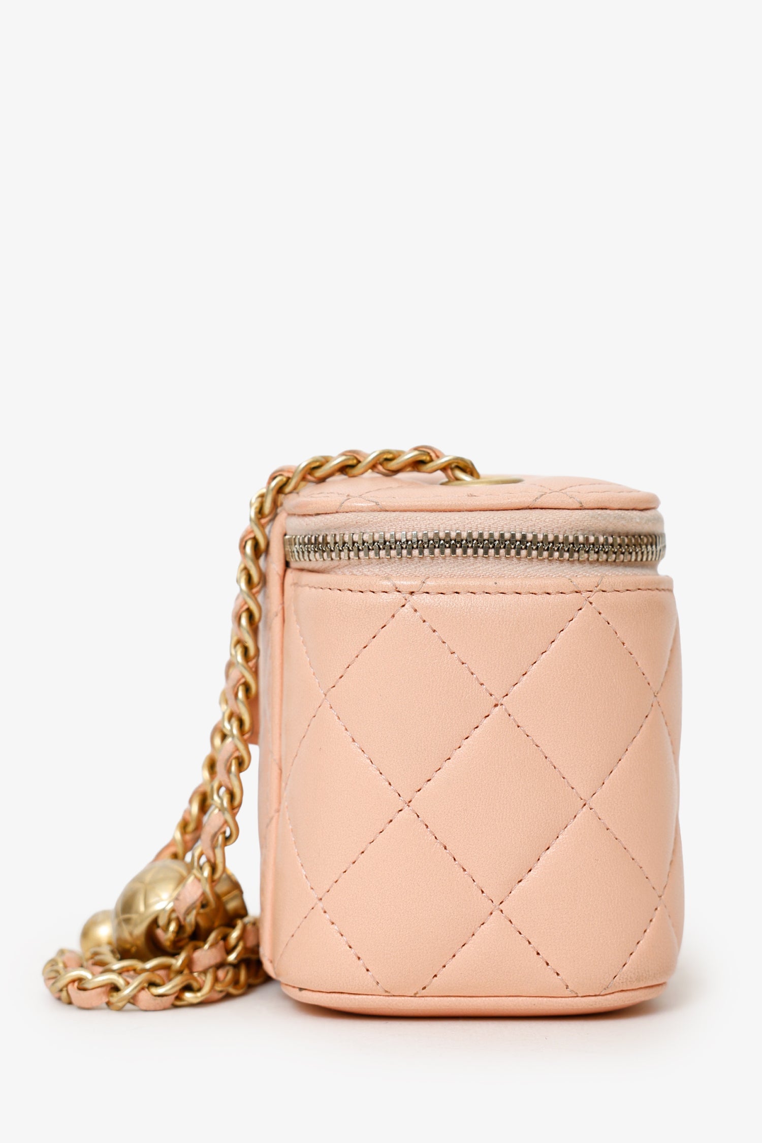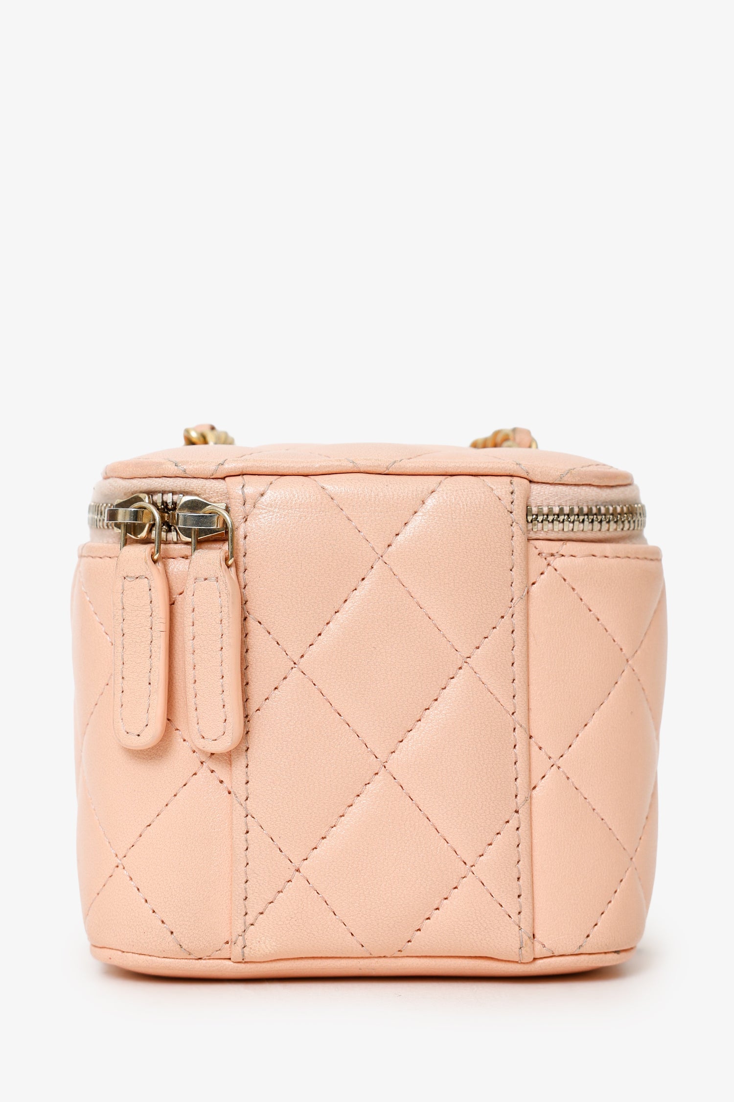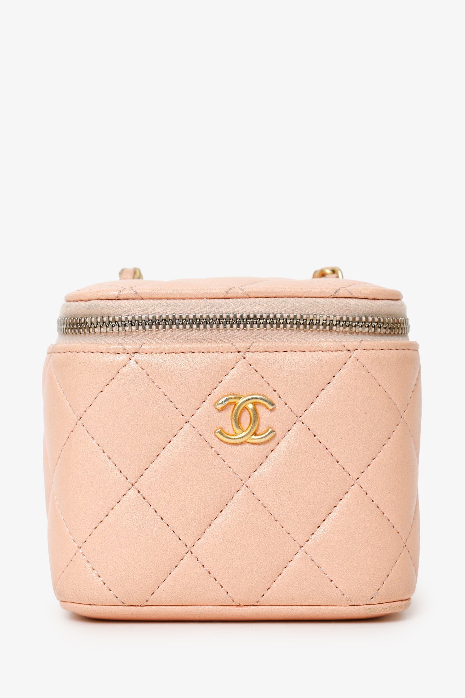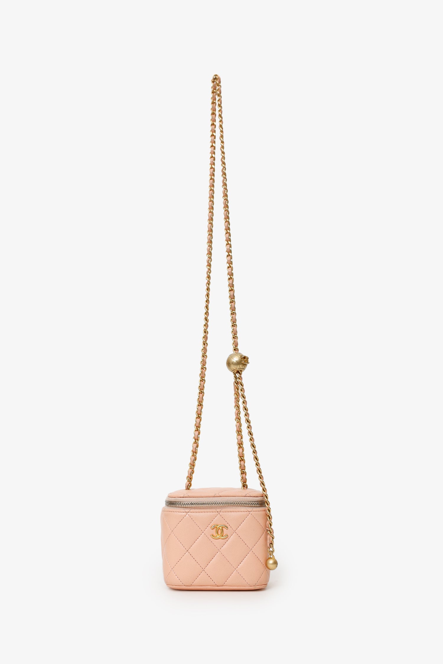 Pre-Loved Chanel™ 2021 Pink Quilted Lambskin Pearl Crush Mini Vanity Case