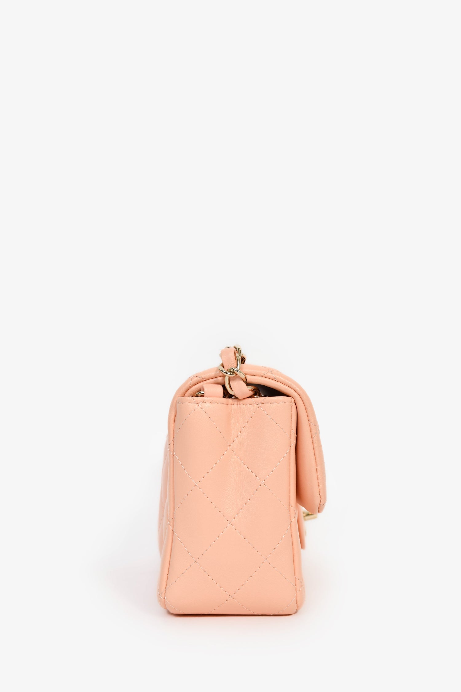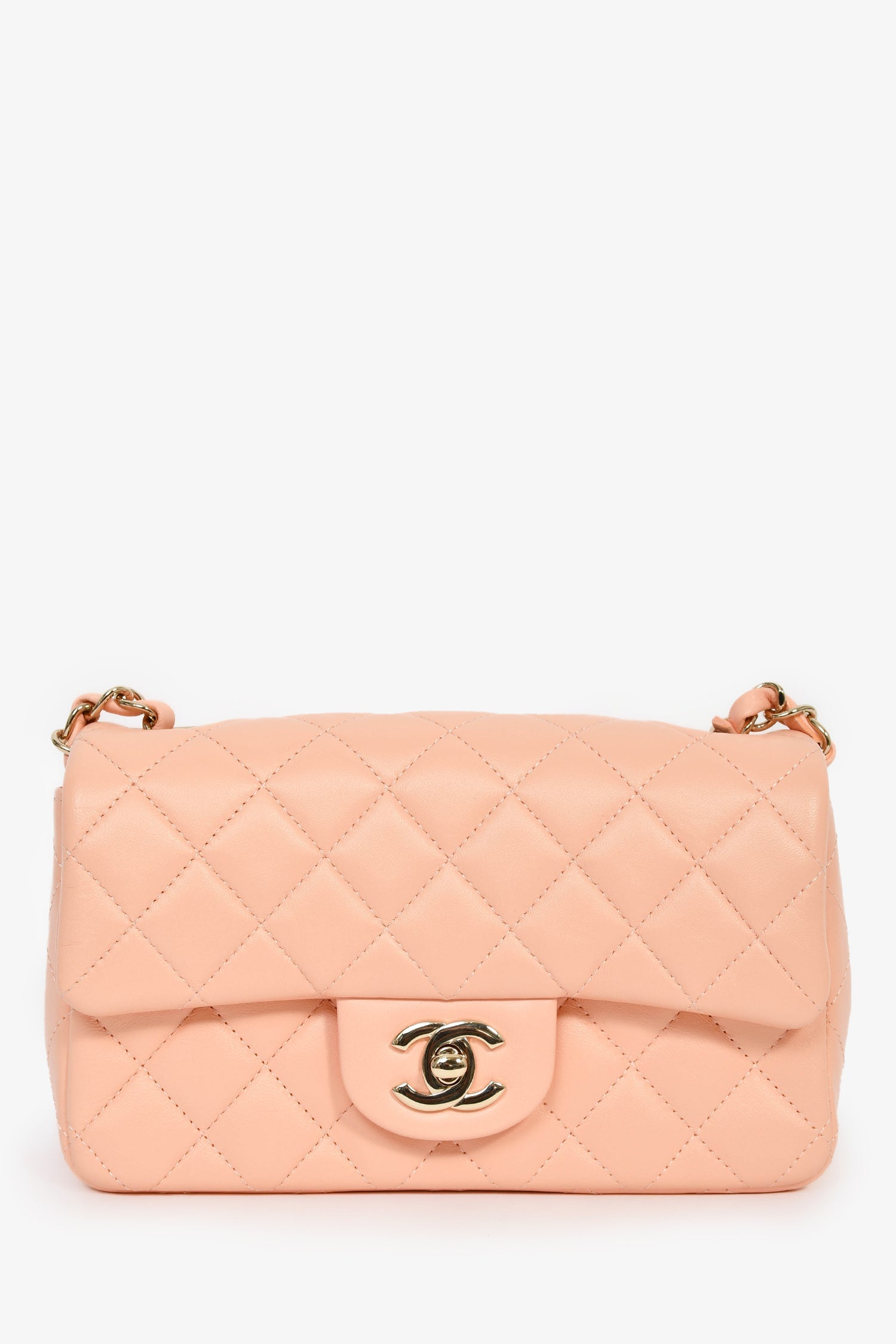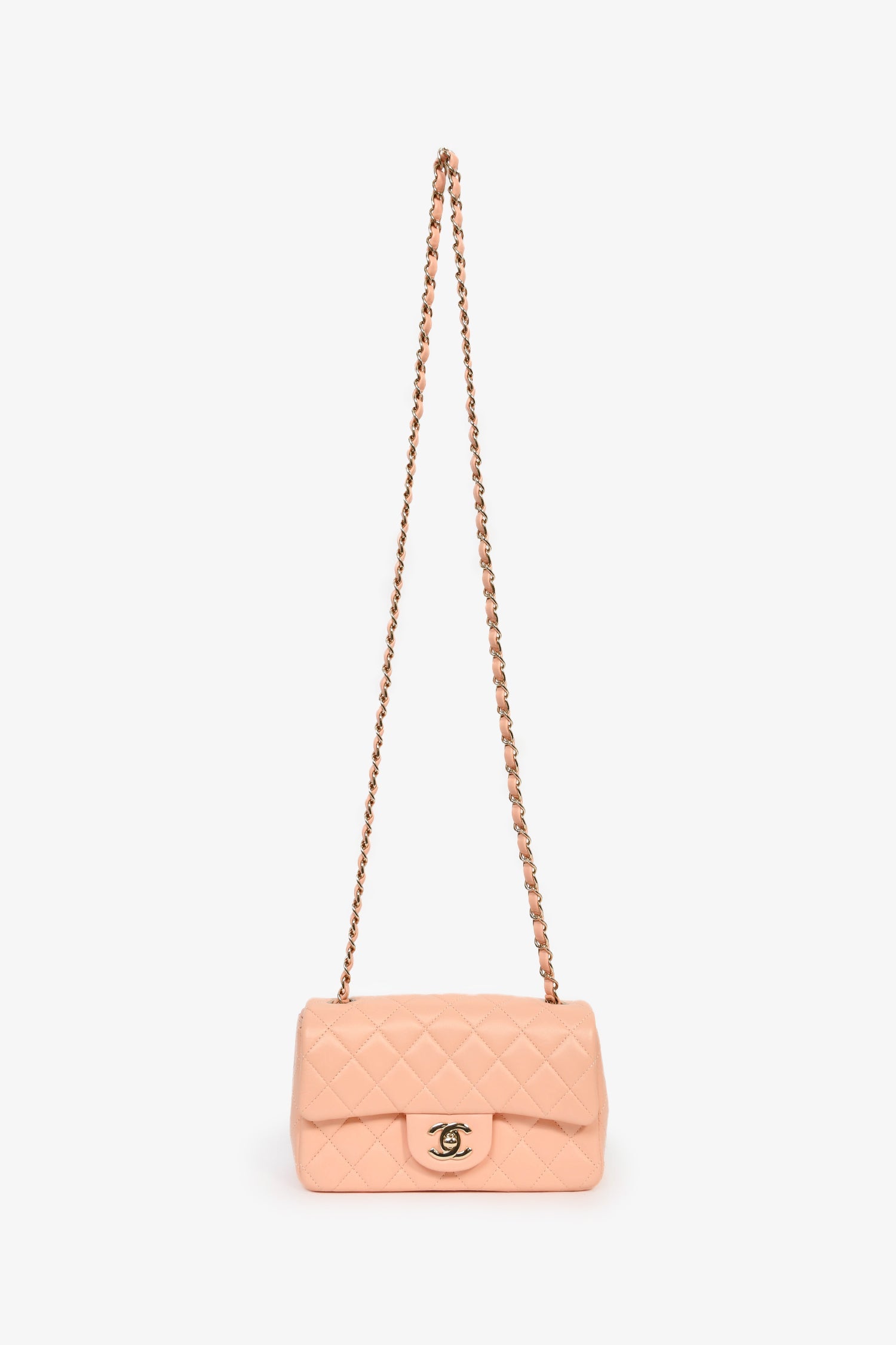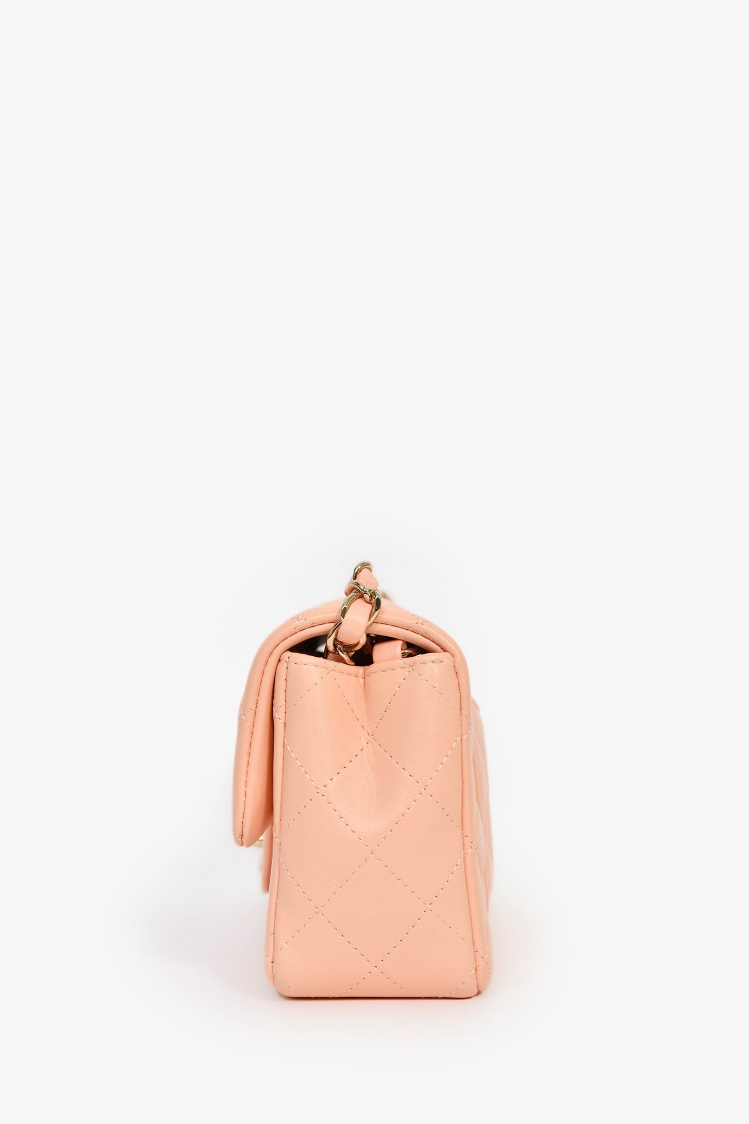Pre-Loved Chanel™ 2022+ Peach-Pink Lambskin Mini Rectangle Classic Flap Bag