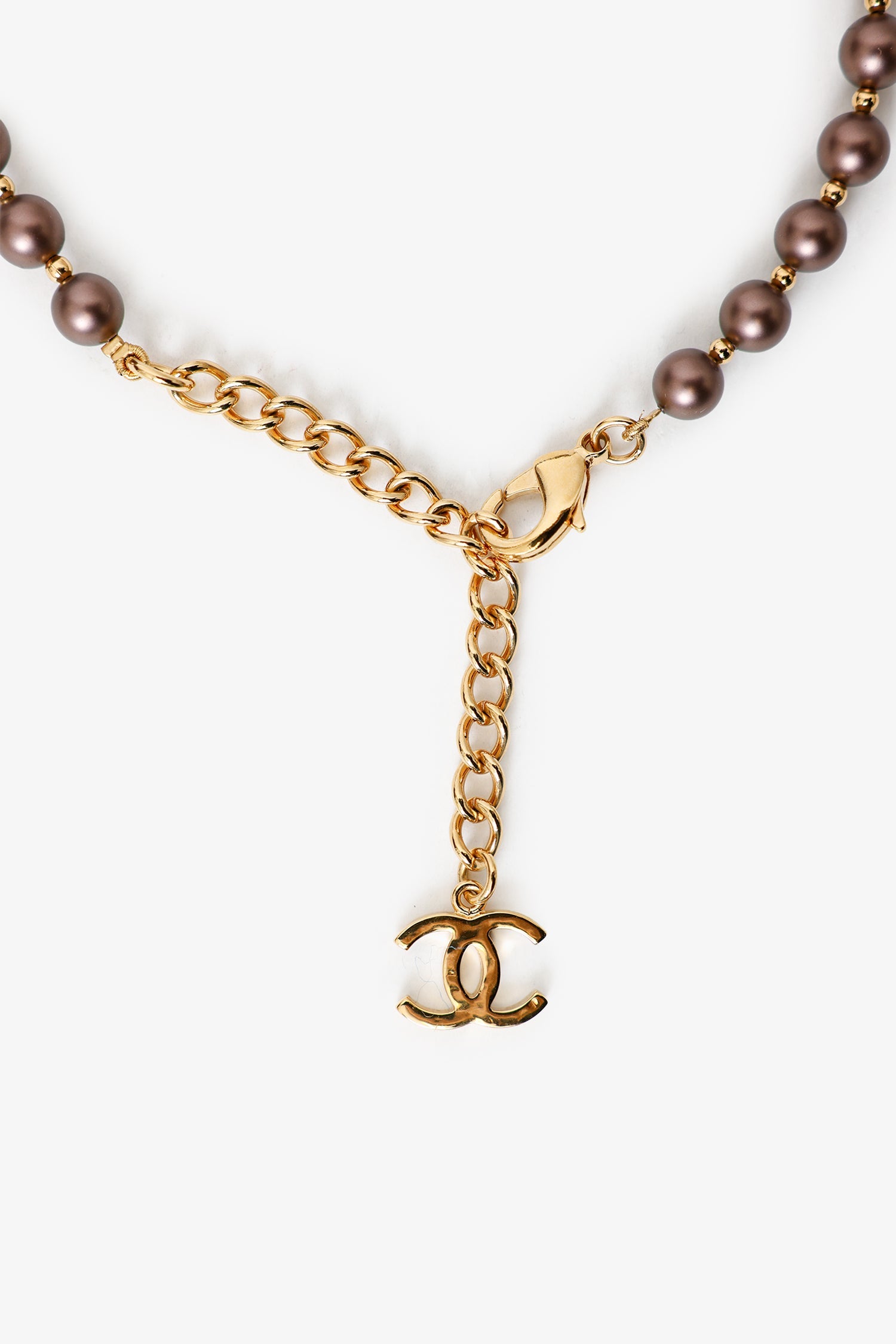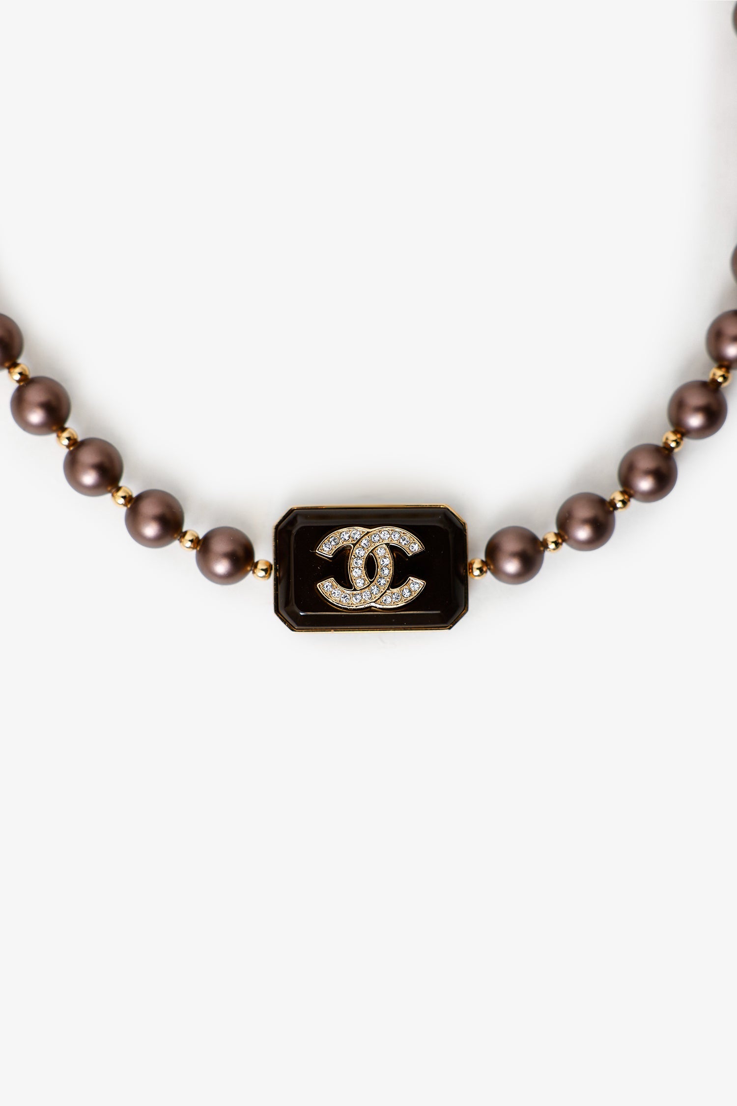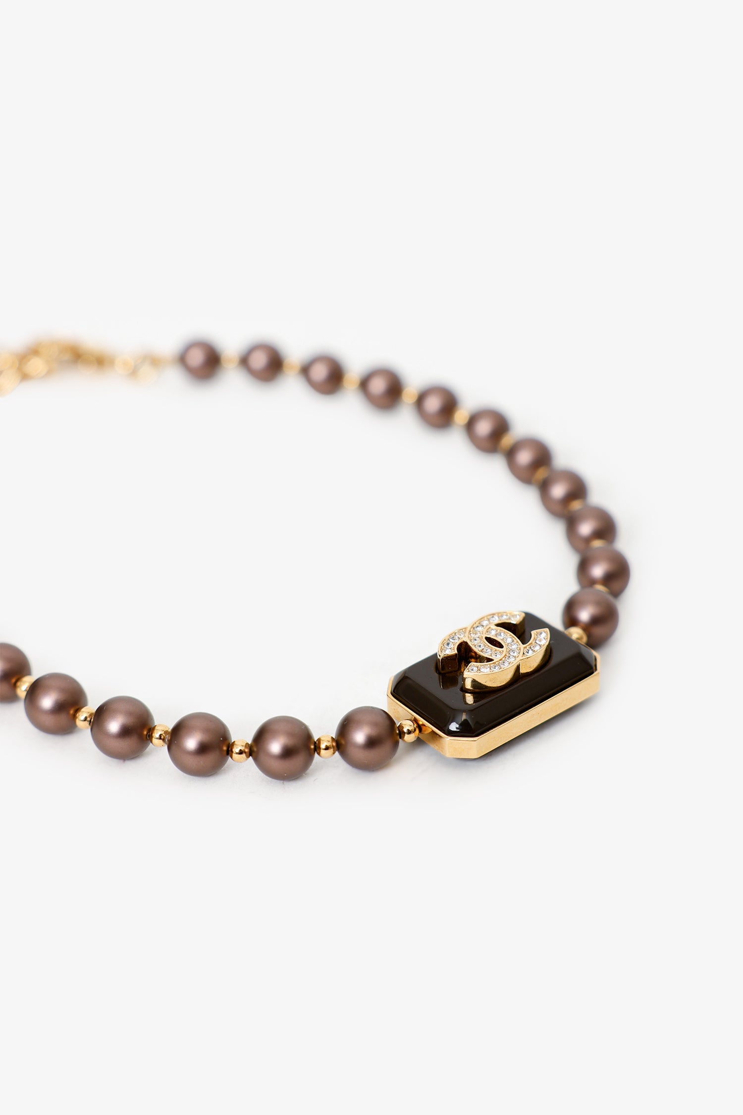 Pre-Loved Chanel™ 2023 Gold-tone Brown Pearl Crystal CC Choker Necklace