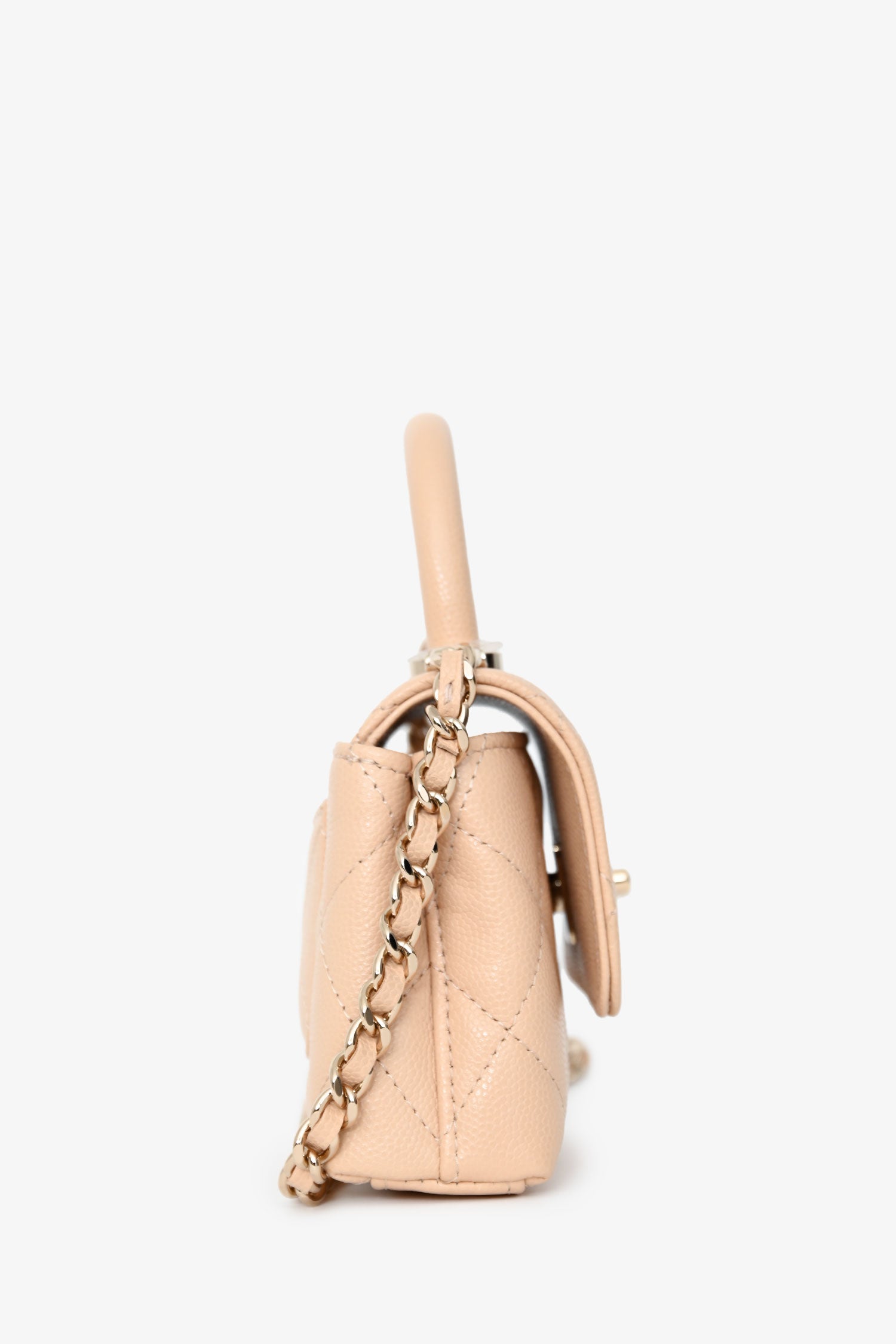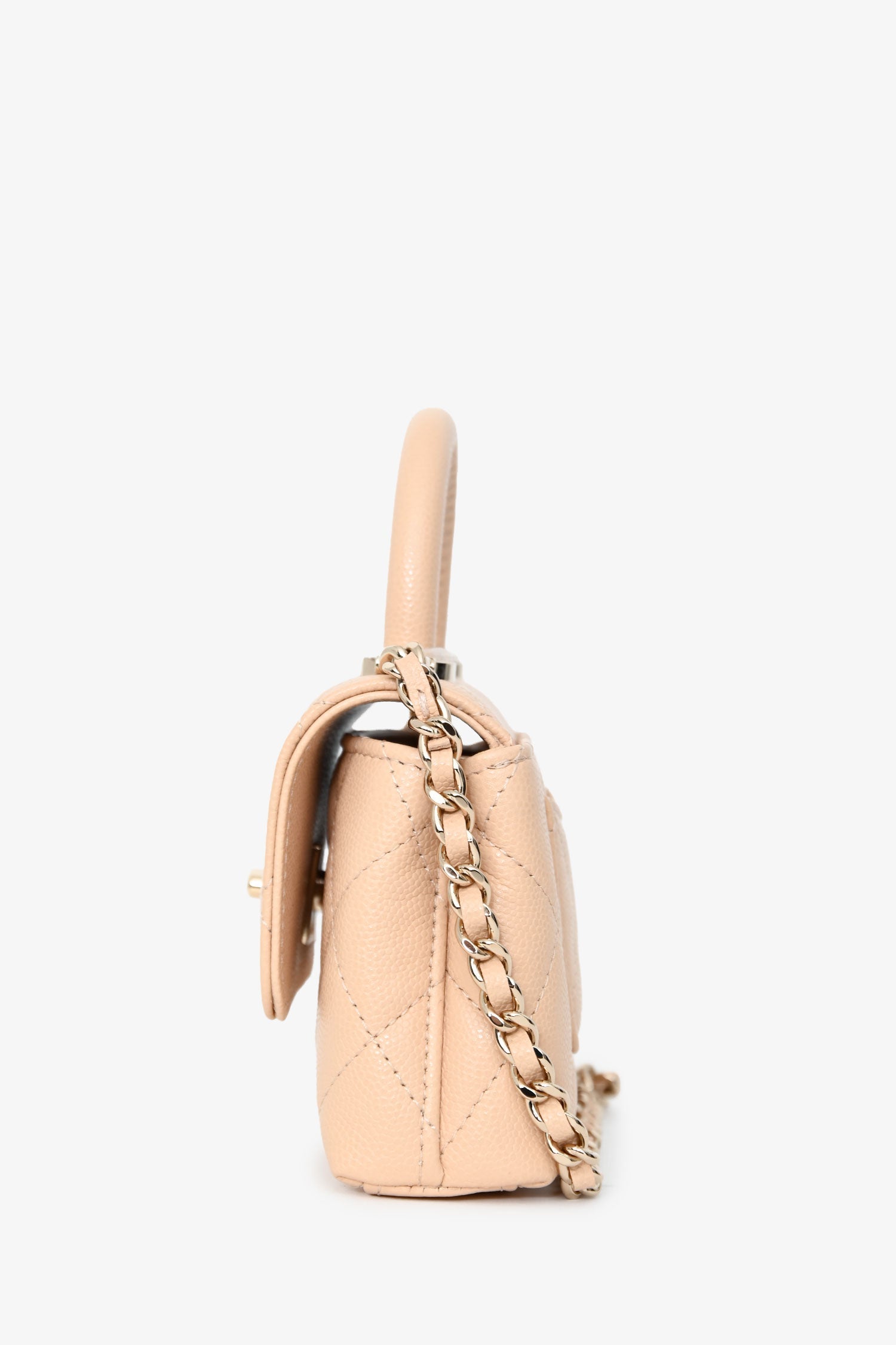 Pre-Loved Chanel™ Beige Caviar Leather Micro Coco Top Handle Bag with Chain