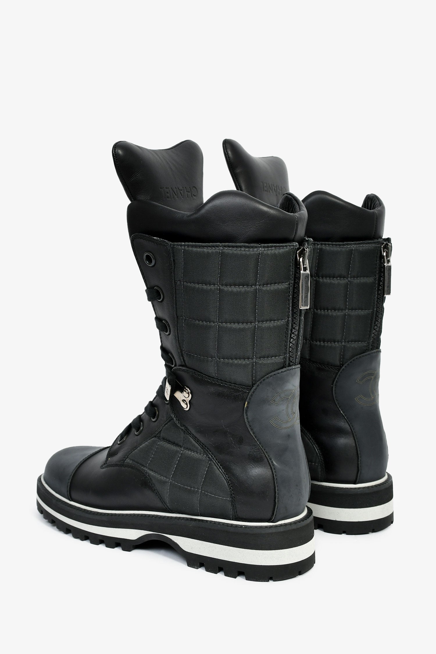 Pre-Loved Chanel™ Black Leather CC Logo Combat Boots Size 37