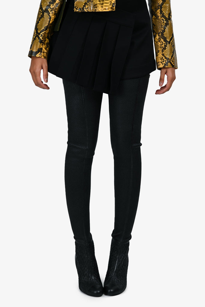 Pre-Loved Chanel™ Black Leather Texture Thigh High Boots. Pull-on. Round toe. Rear zip. Tonal