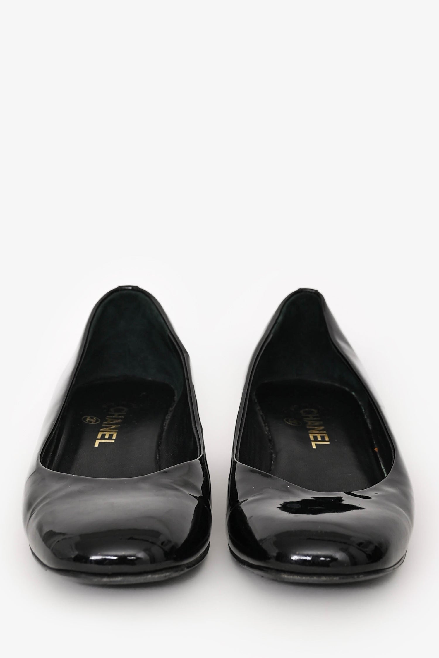 Pre-Loved Chanel™ Black Patent Leather Heeled Ballet Flats Size 40