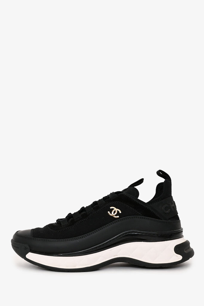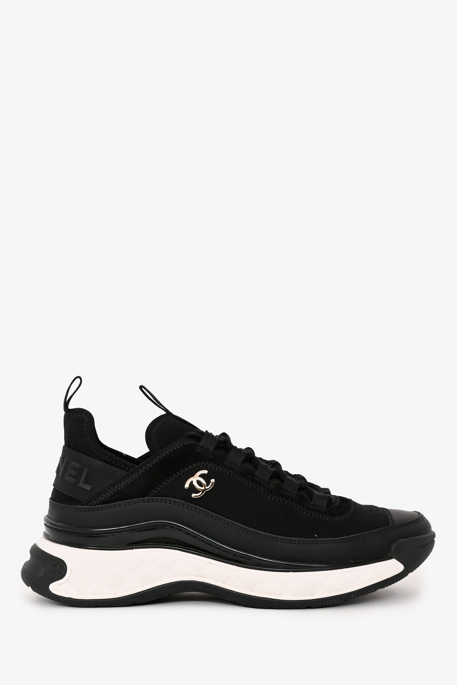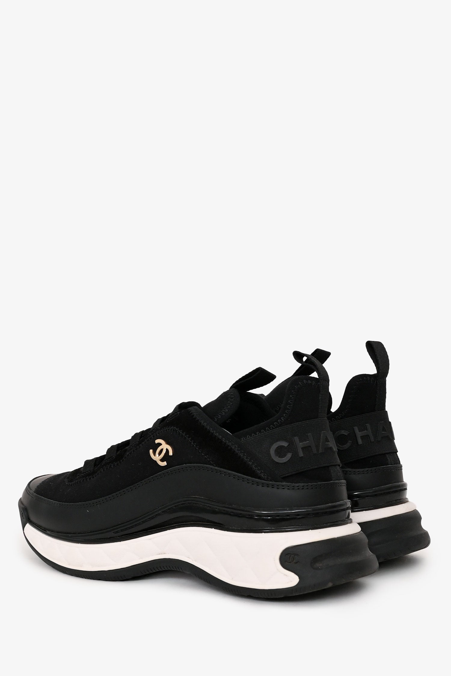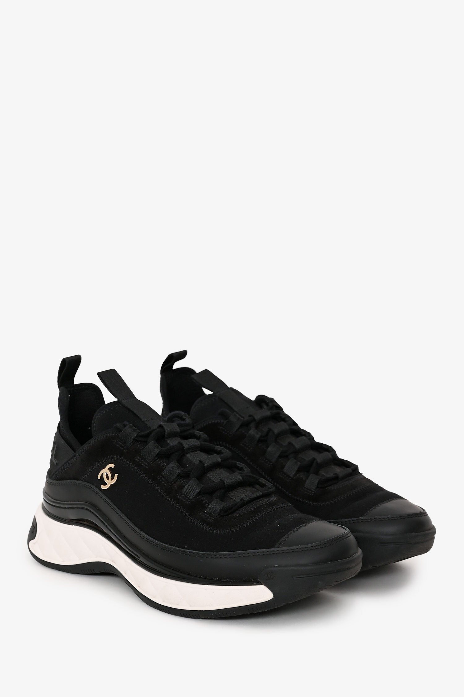 Pre-Loved Chanel™ Black Textile/Rubber Logo Sneakers Size 37.5