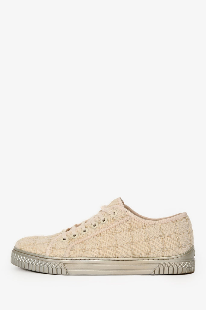 Pre-Loved Chanel™ Cream/Slilver Tweed Lace Up Sneaker Size 41