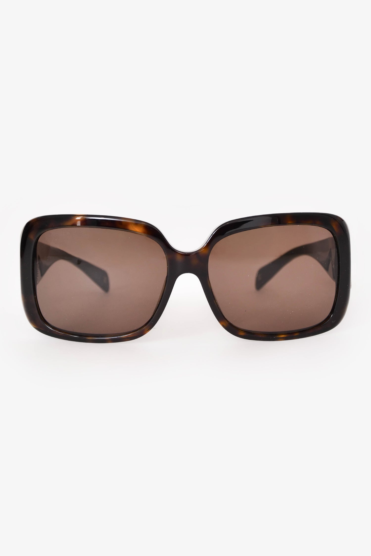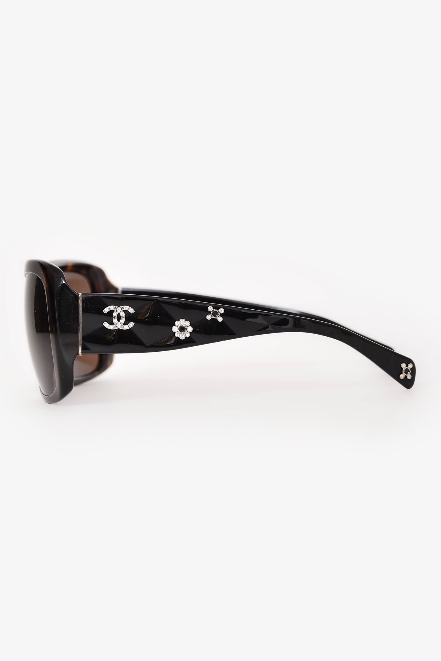Pre-Loved Chanel™ Dark Brown Tortoise Crystal Embellished CC Sunglasses