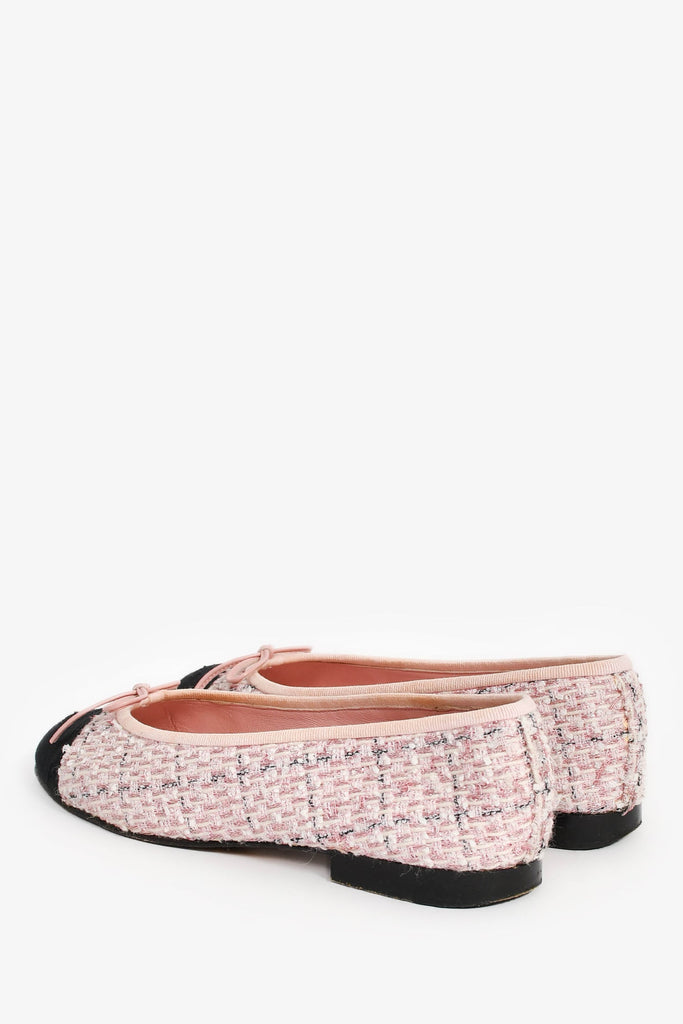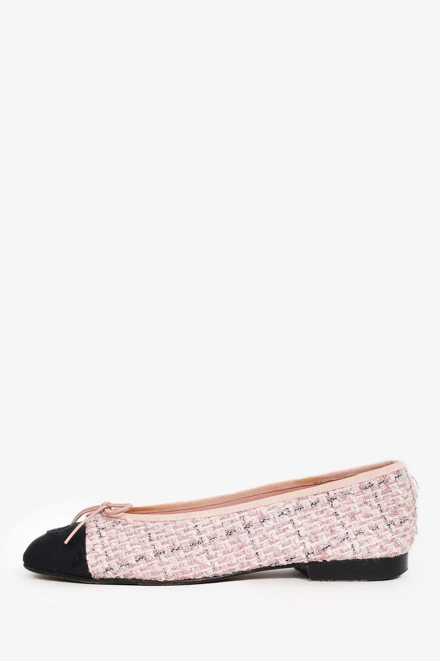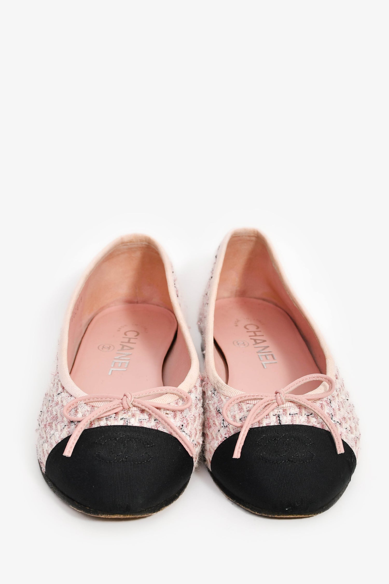 Pre-Loved Chanel™ Pink/Black Tweed CC Cap Toe Ballet Flats Size 36.5