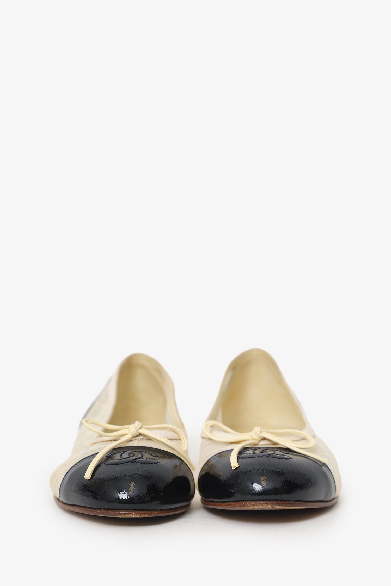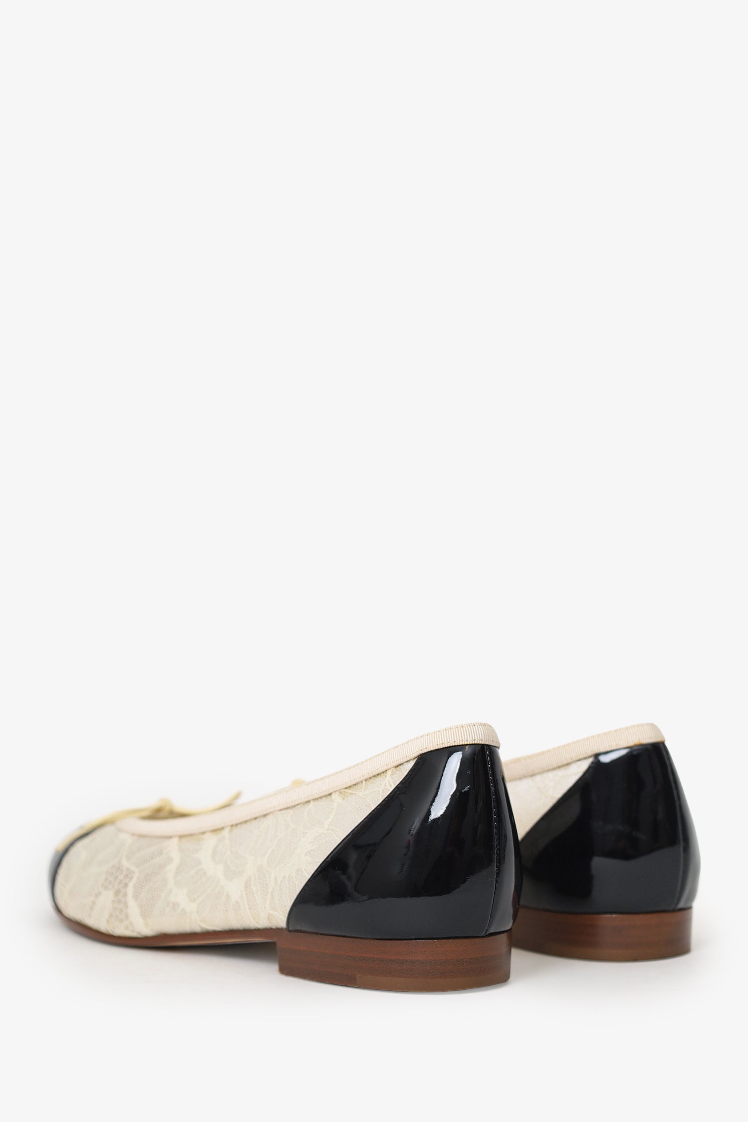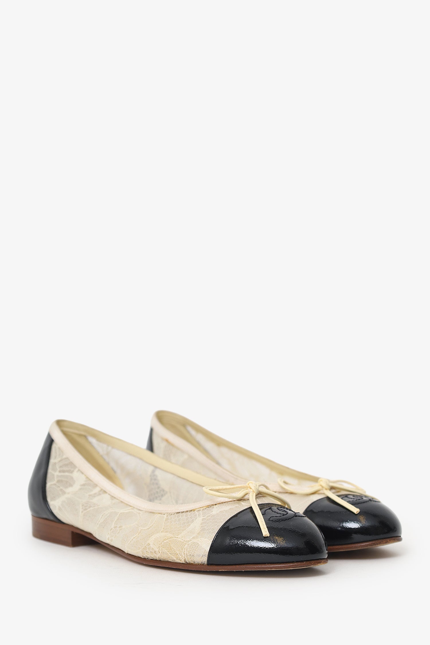 Pre-Loved Chanel™ White/Black Lace CC Cap Toe Ballet Flats Size 36