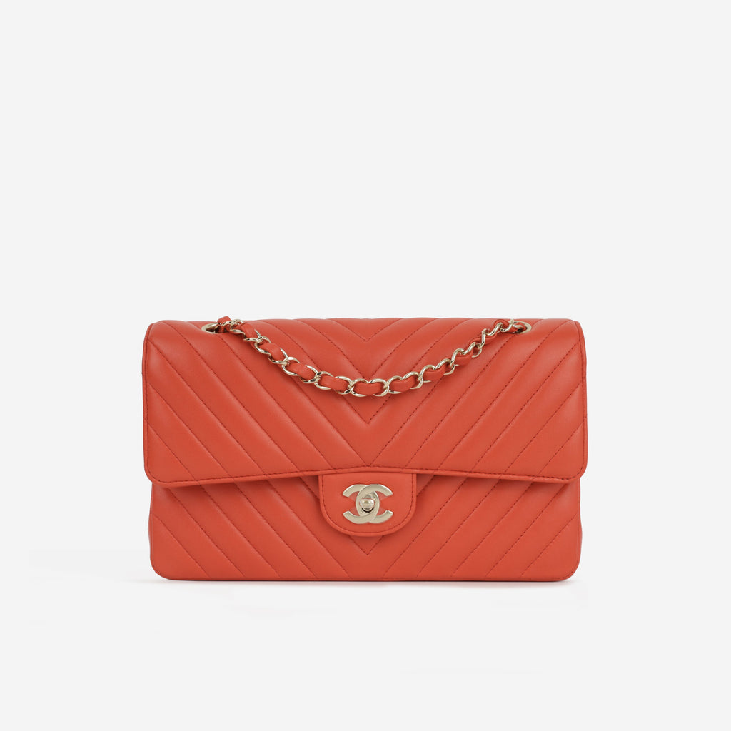 Chanel Medium Classic Flap - Coral Chevron Lambskin | Gold Hardware