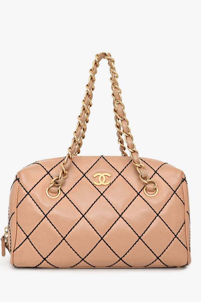 Pre-Loved Chanel™ 2003/2004 Cream Leather Wild Stitch Surpique Bowler Bag