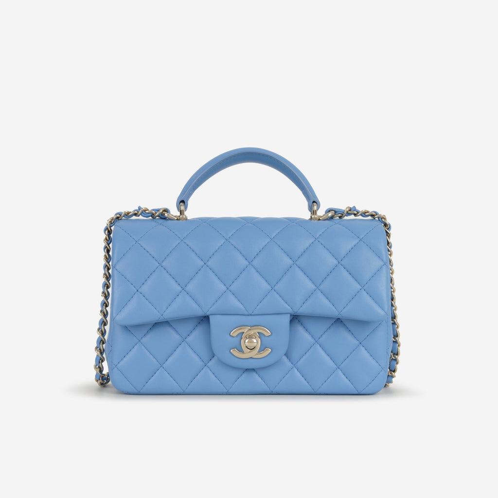 Chanel Mini Top Handle Flap - Blue Lambskin | Champagne Gold Hardware