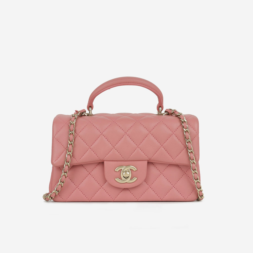 Chanel Mini Top Handle Flap - Pink Lambskin | Champagne Gold Hardware