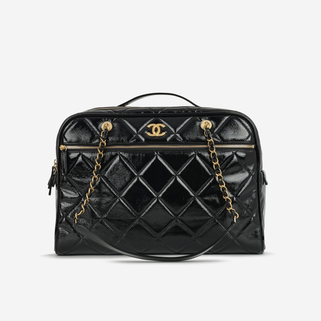Chanel 2024/25 Métiers d'art Suitcase - Black Patent Crumpled Calfskin | Gold Hardware