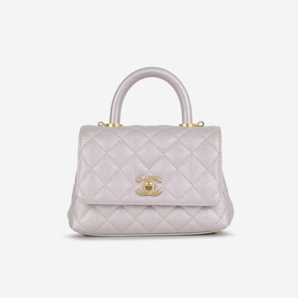 Chanel Mini Coco Handle - Iridescent Lilac Caviar | Champagne Gold Hardware