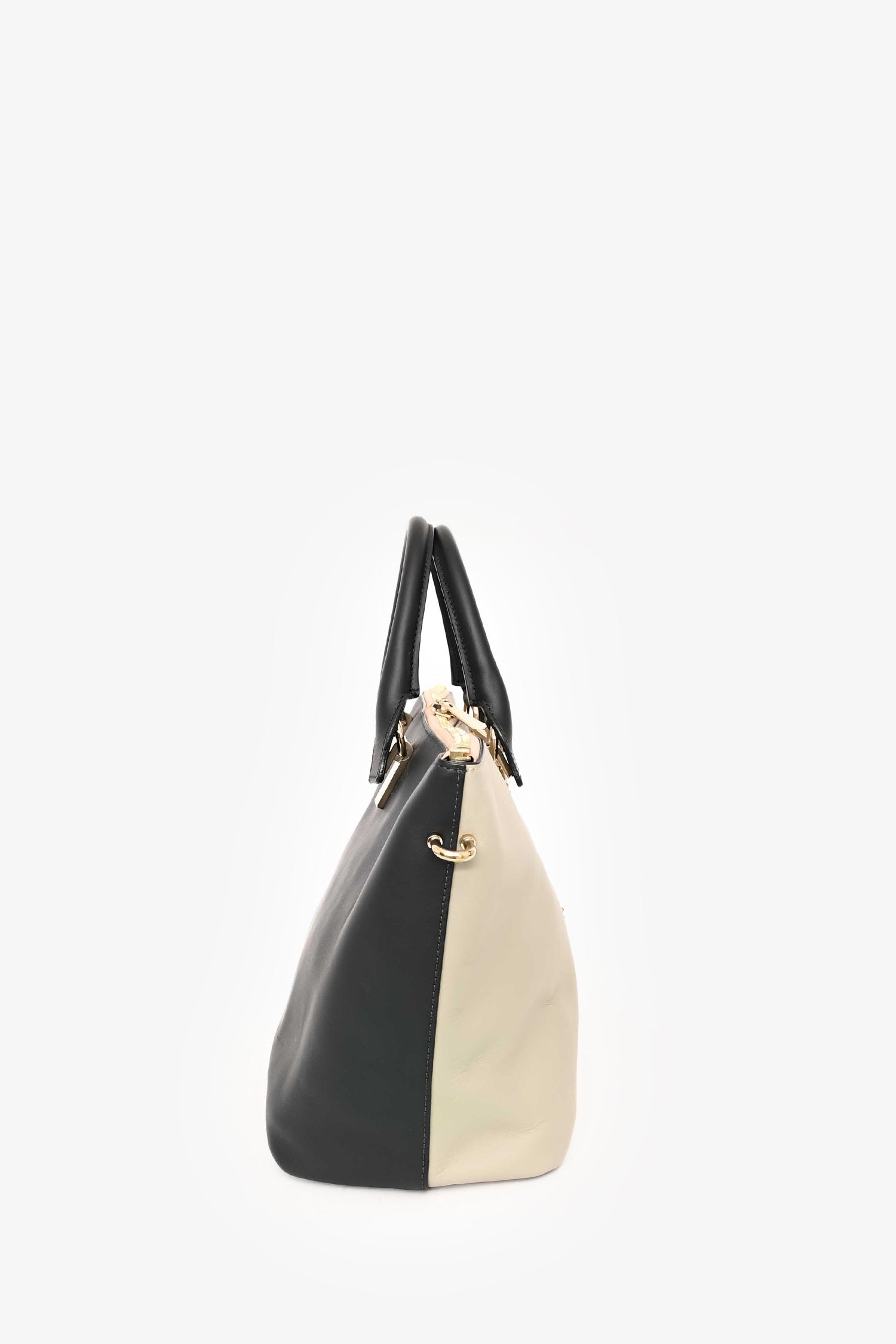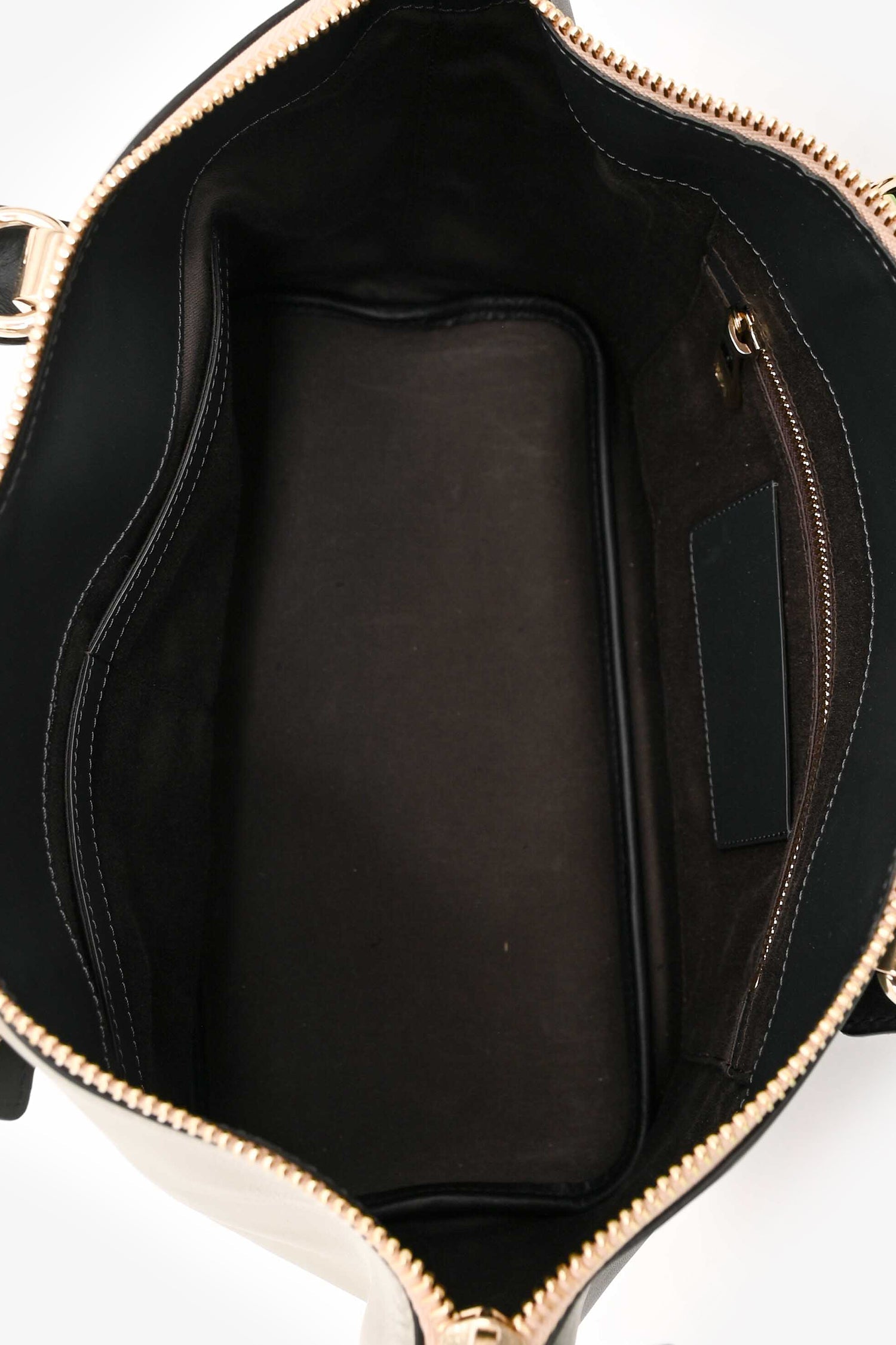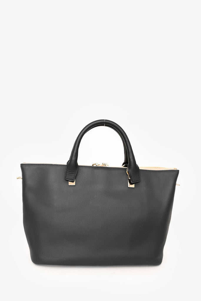 Chloe 2014 Black/Light Grey Leather Baylee Tote with Strap. Top zip closure with double zip pull. Dual rolled leather top handles and detachable shoulder strap. 1 interior zip pocket; 2 interior slip pockets. Gold-tone hardware. Tonal stitching.