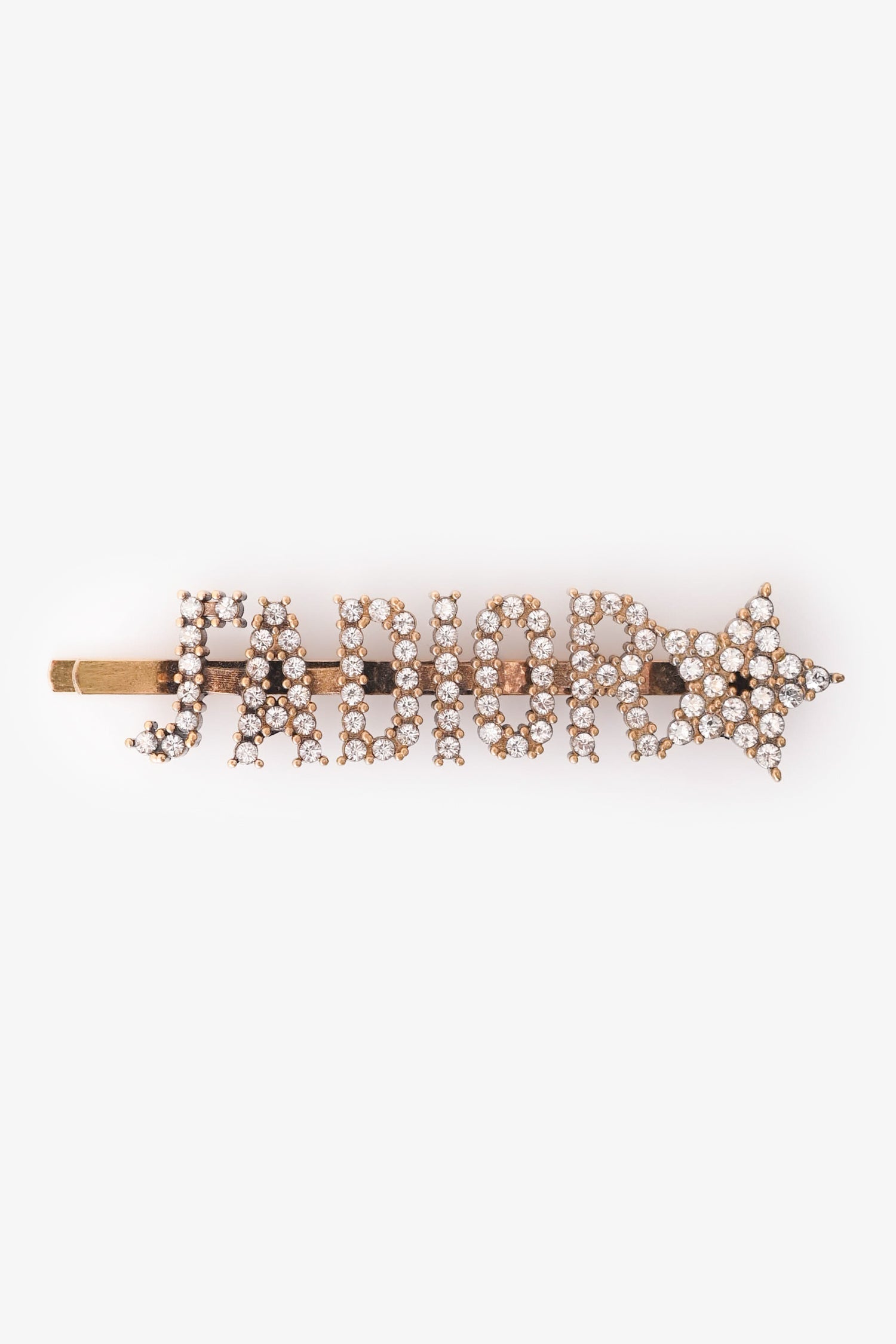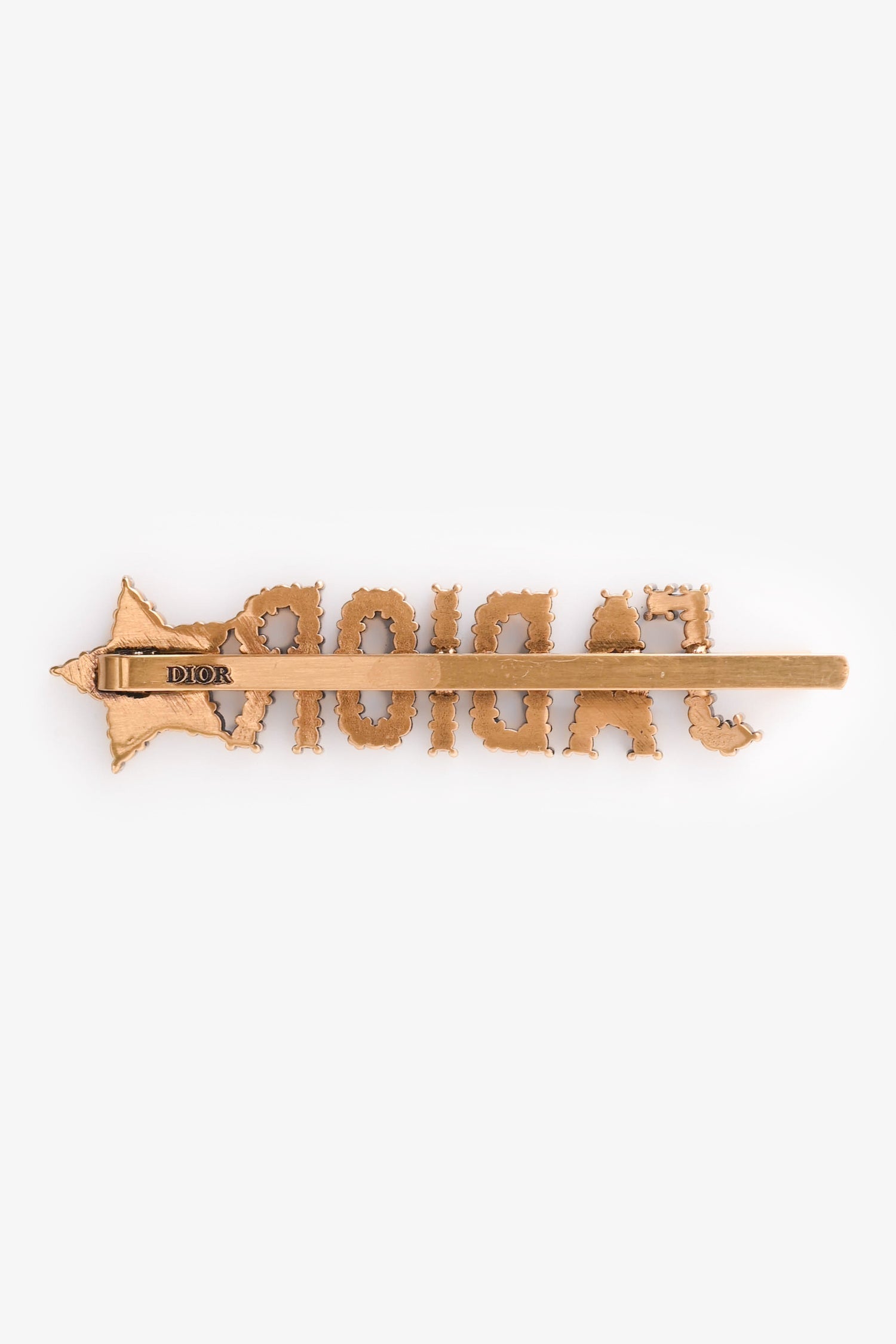 Christian Dior Aged Gold Tone Metal Crystal Embellished J'Adior Hair Clip. Gold-tone hardware.