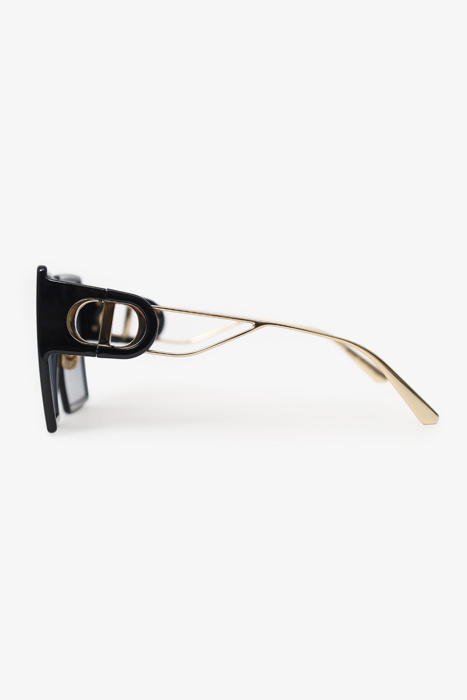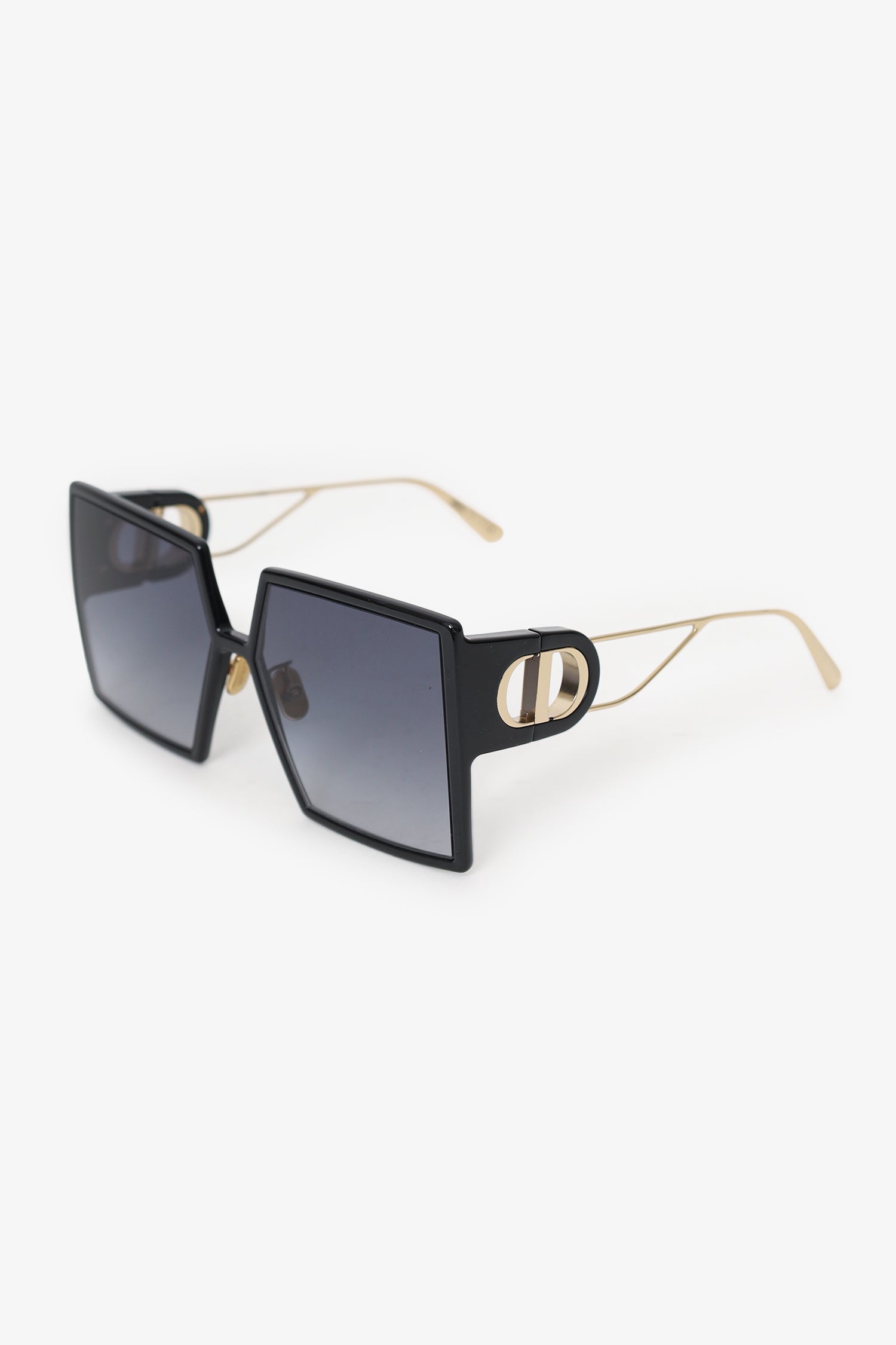 Christian Dior Black Frame 30 Montaigne Square Sunglasses. Adjustable nose pads. Gold-tone hardware.