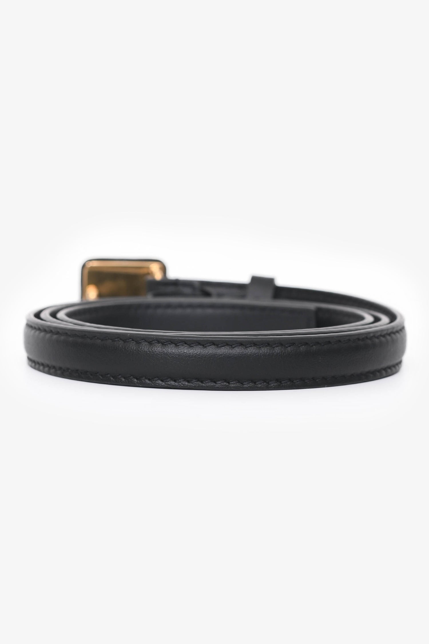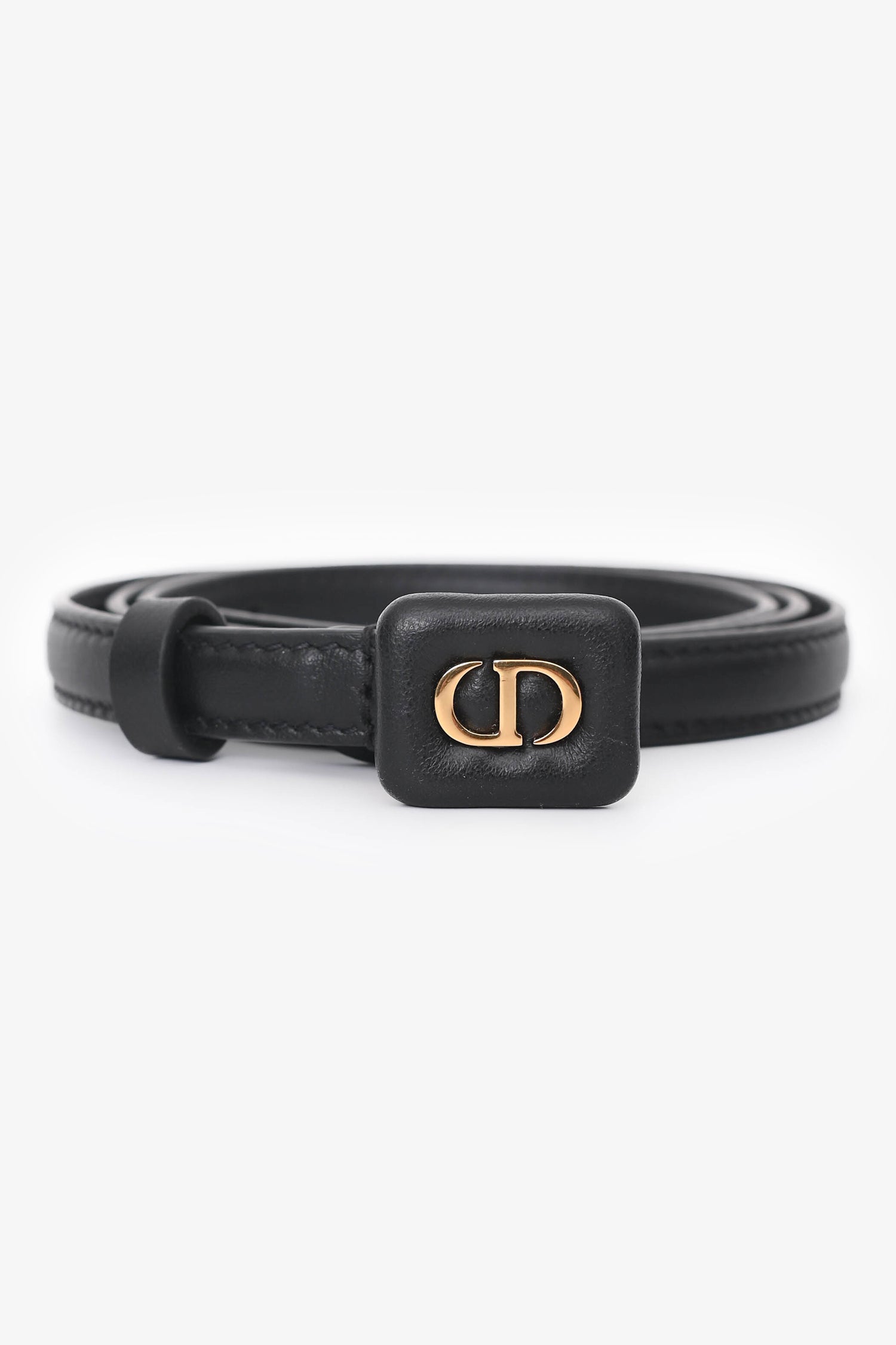 Christian Dior Black Leather Bobby Narrow Belt. Adjustable pull-through with push-pin closure. Gold-tone hardware. Tonal stitching.
