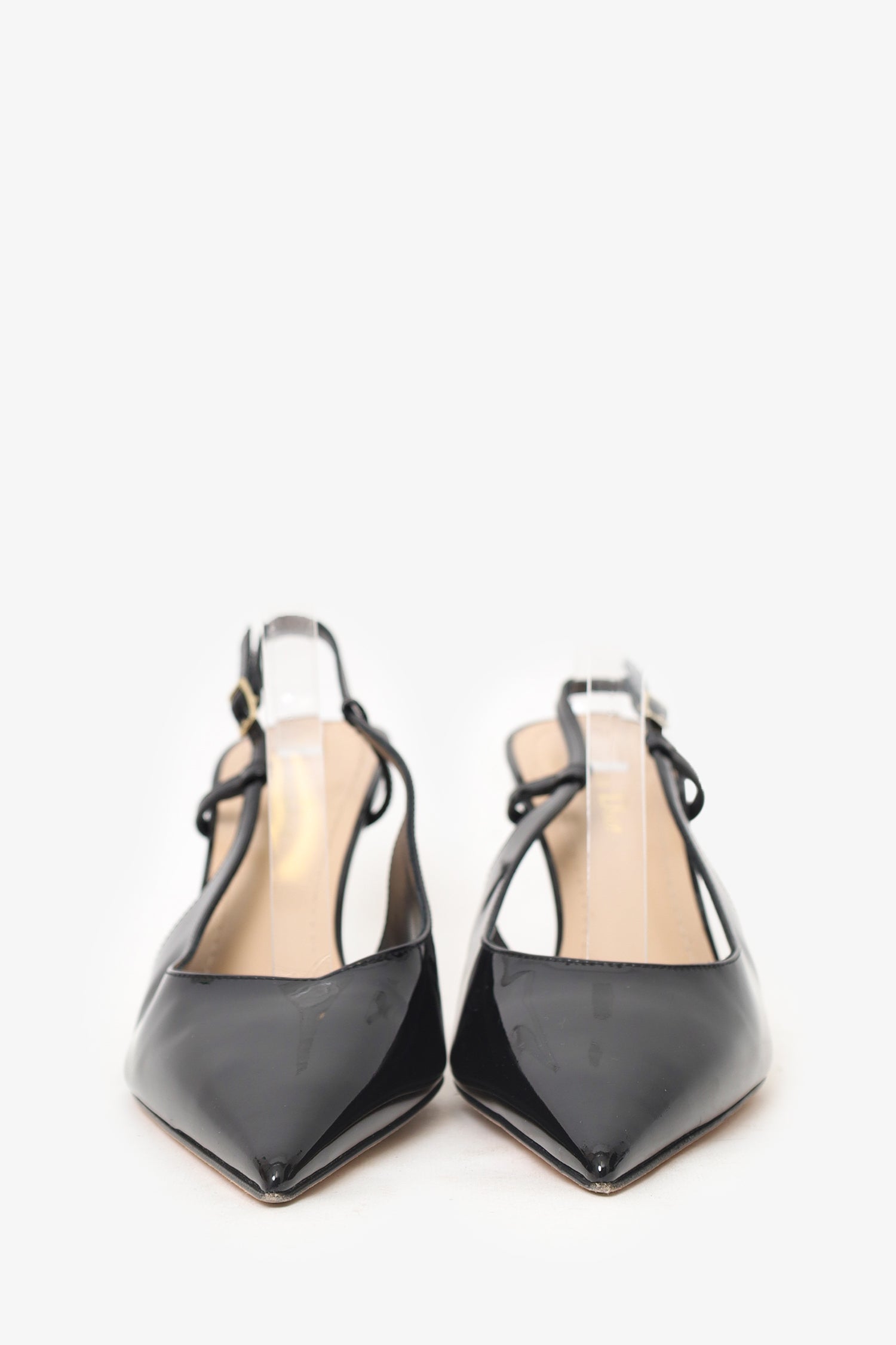Christian Dior Black Patent Leather Tribales Pointed Sling Back Heels Size 39.5