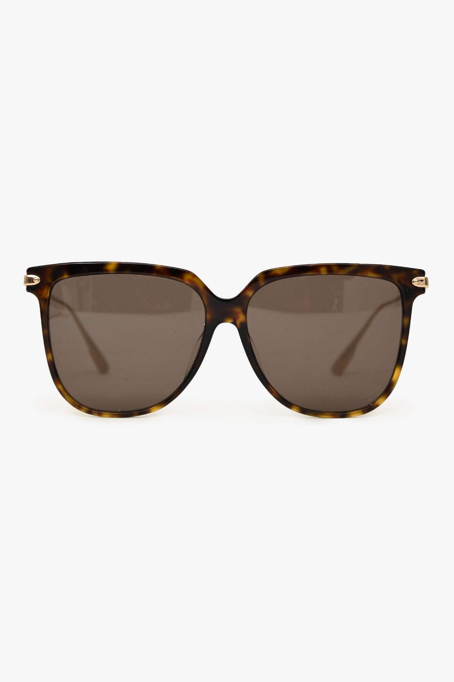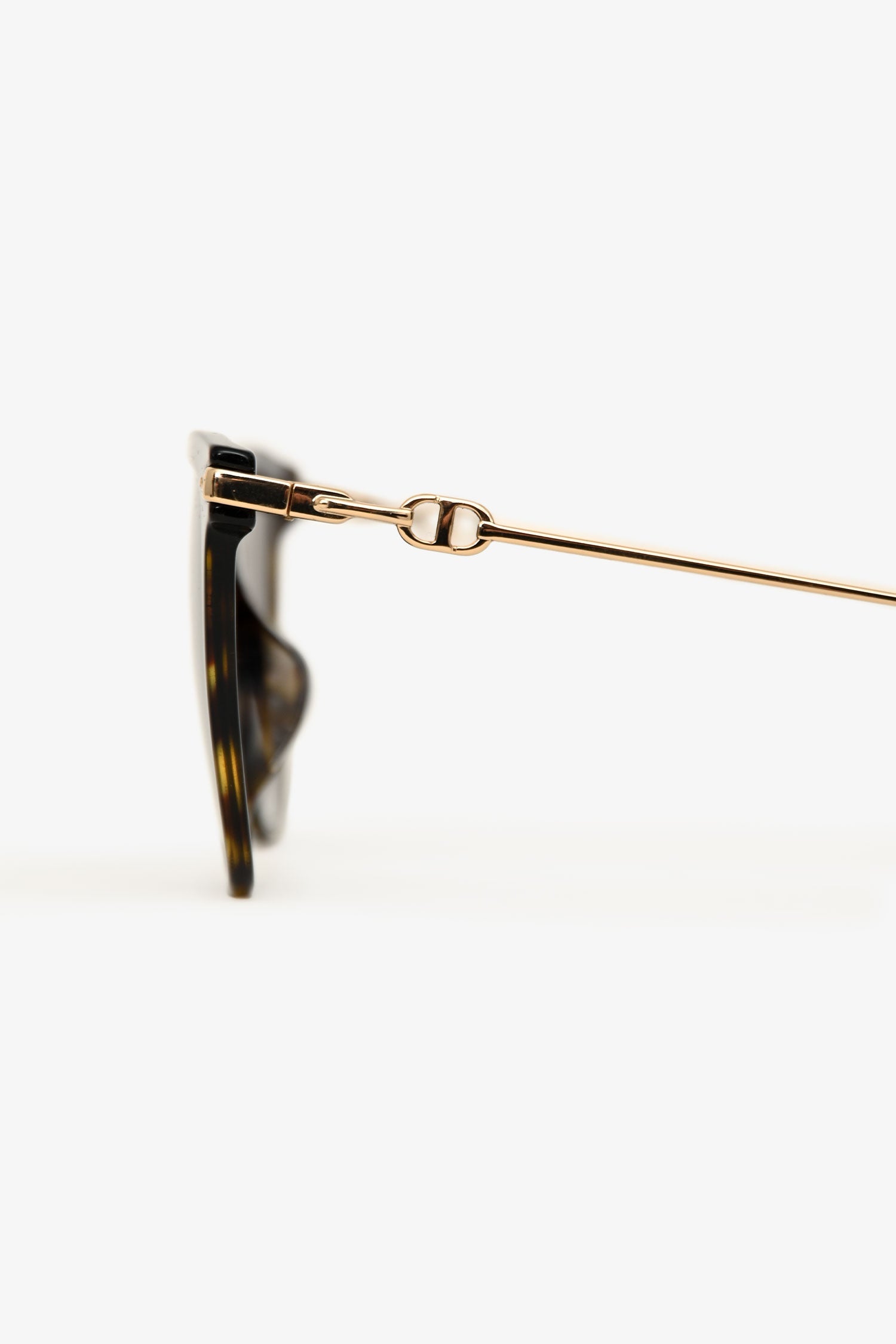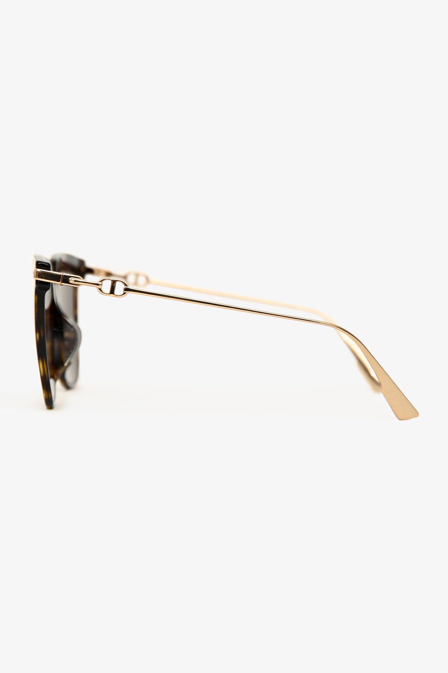 Christian Dior Brown Tortoise/Gold Tone Oversized Logo Sunglasses