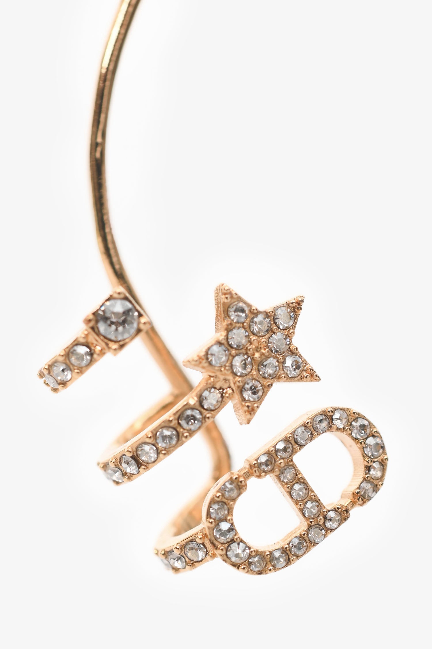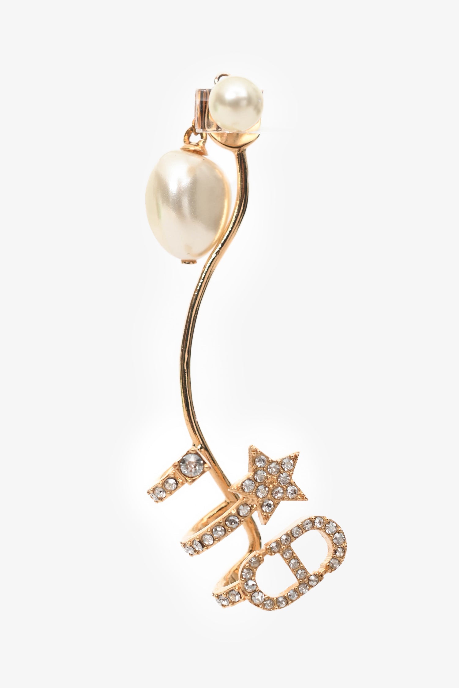 Christian Dior Gold Toned Pearl Crystal Star Left Earring Climber
