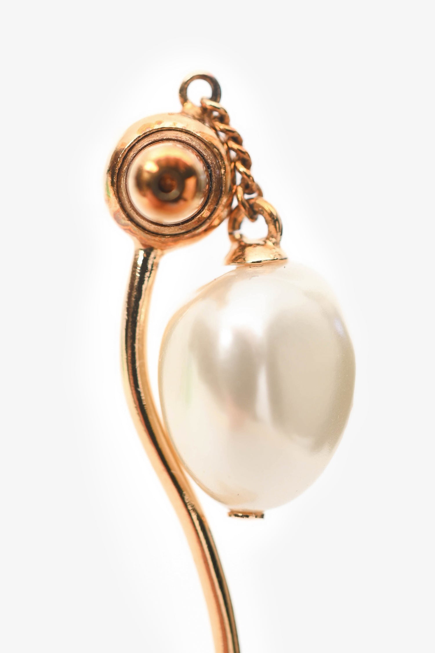 Christian Dior Gold Toned Pearl Crystal Star Left Earring Climber. Push-pin closure. Gold-tone hardware.