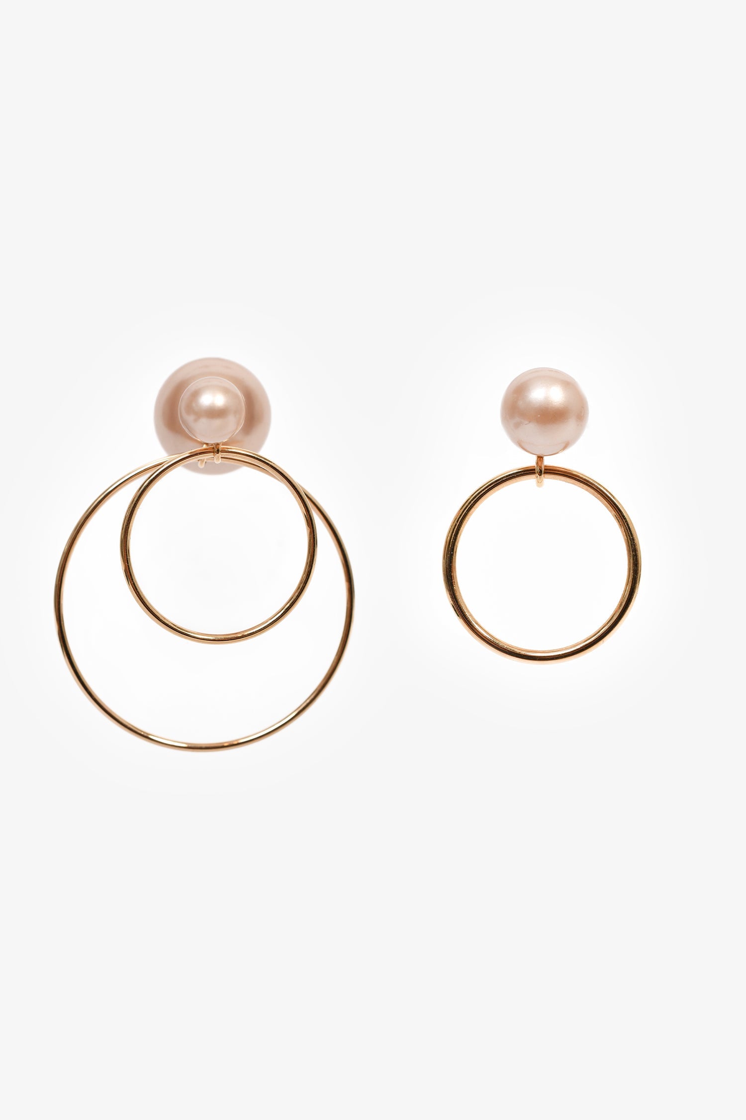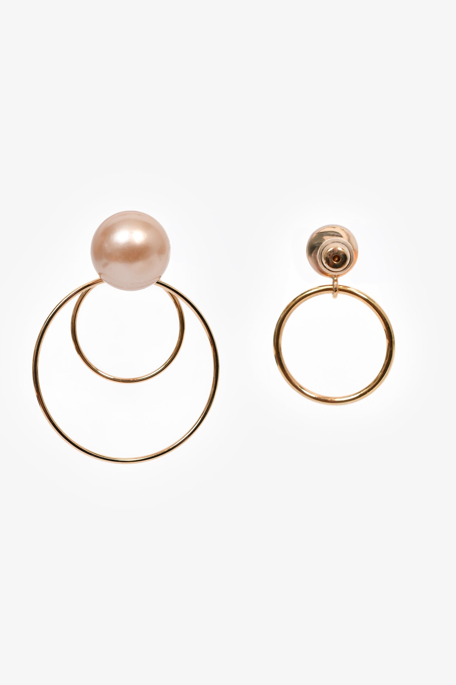 Christian Dior Gold Toned Pink Faux Pearl 'Mise En Dior' Tribales Hoop Earrings. Post-stud closures.