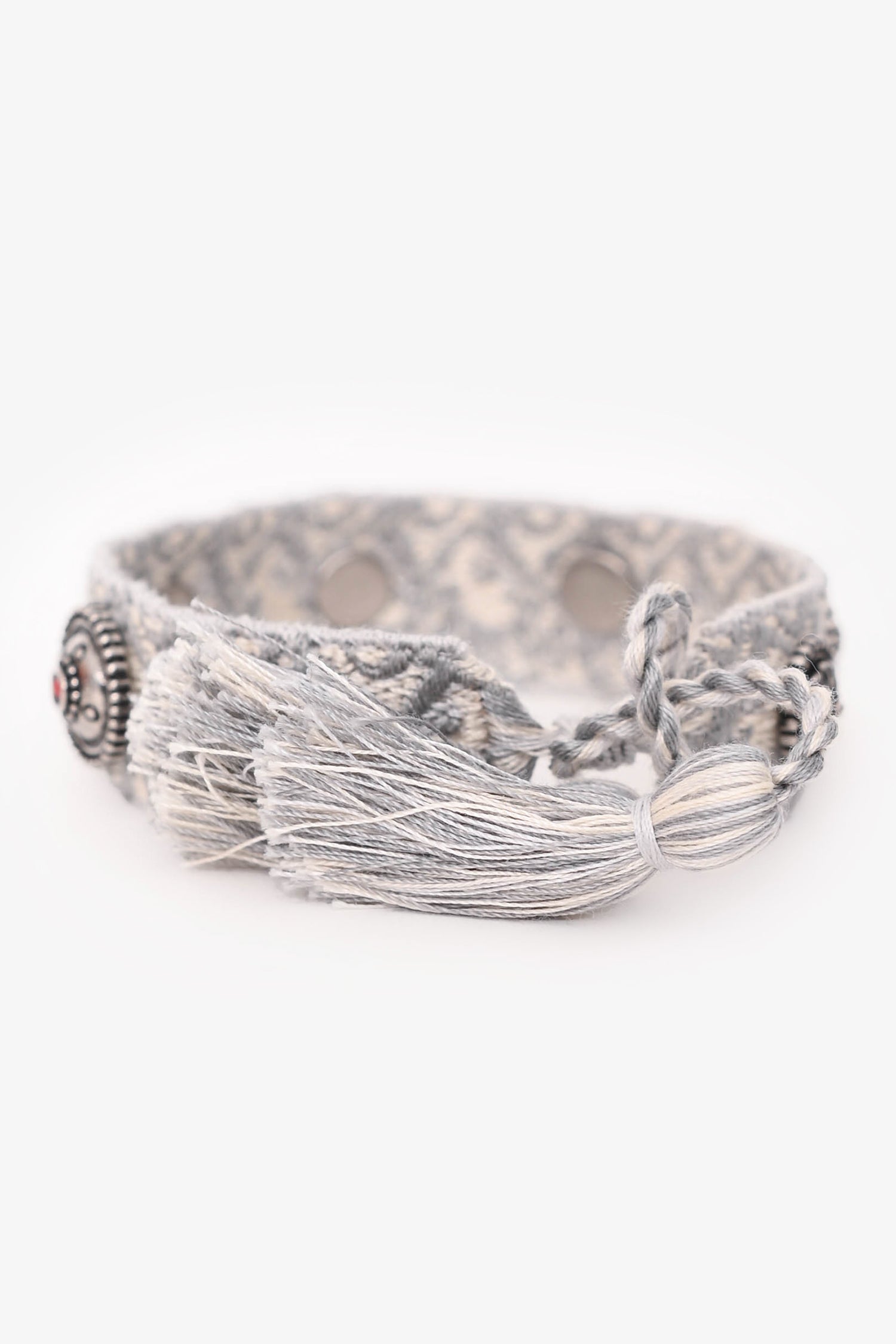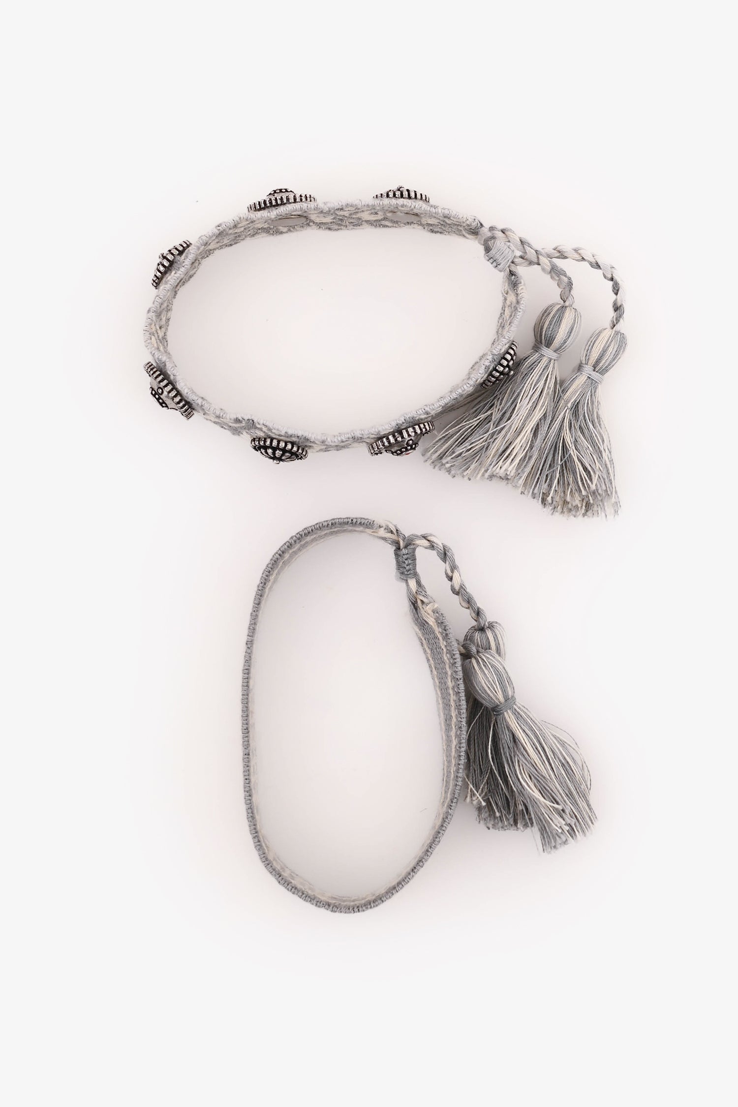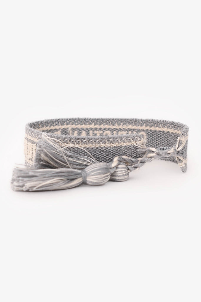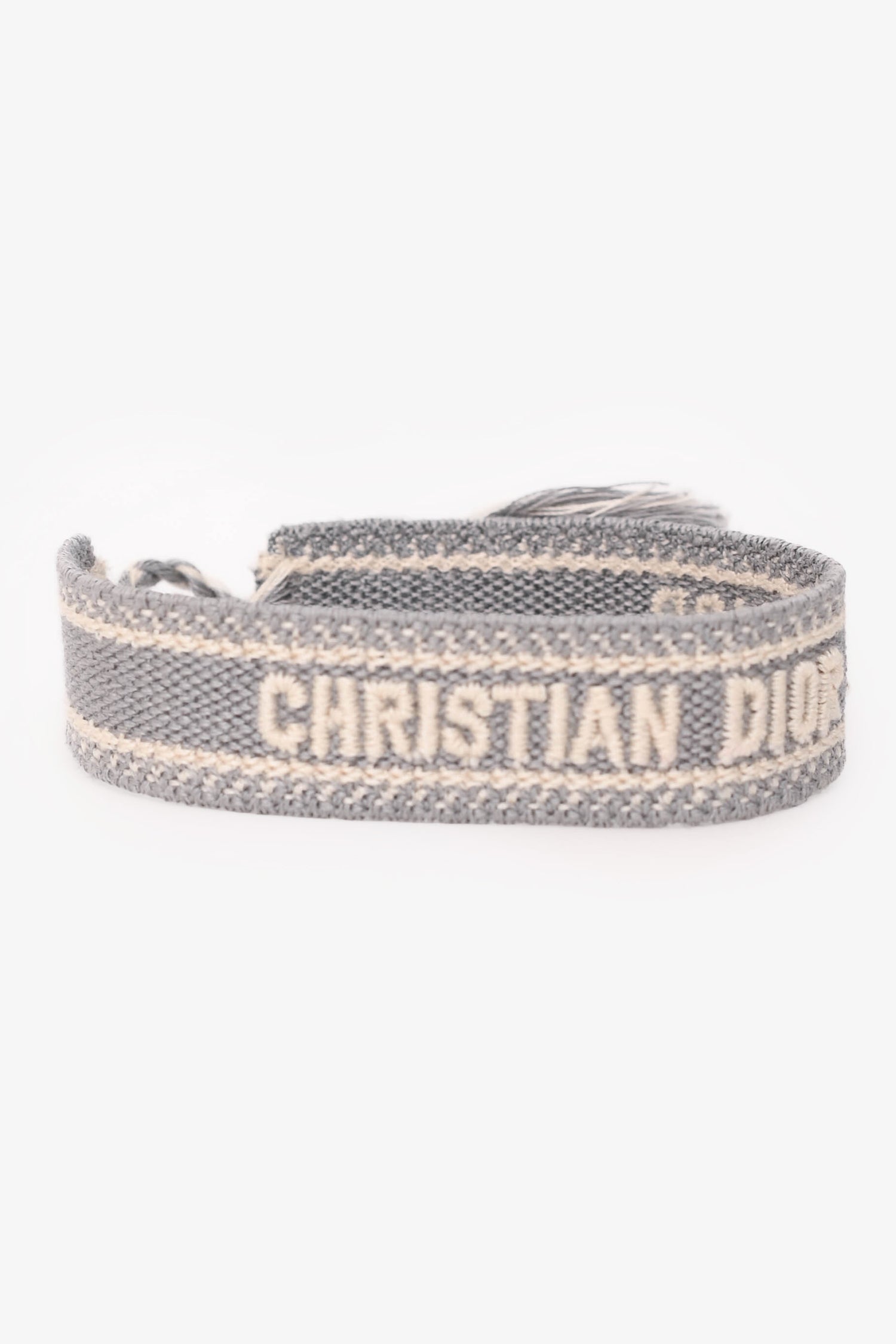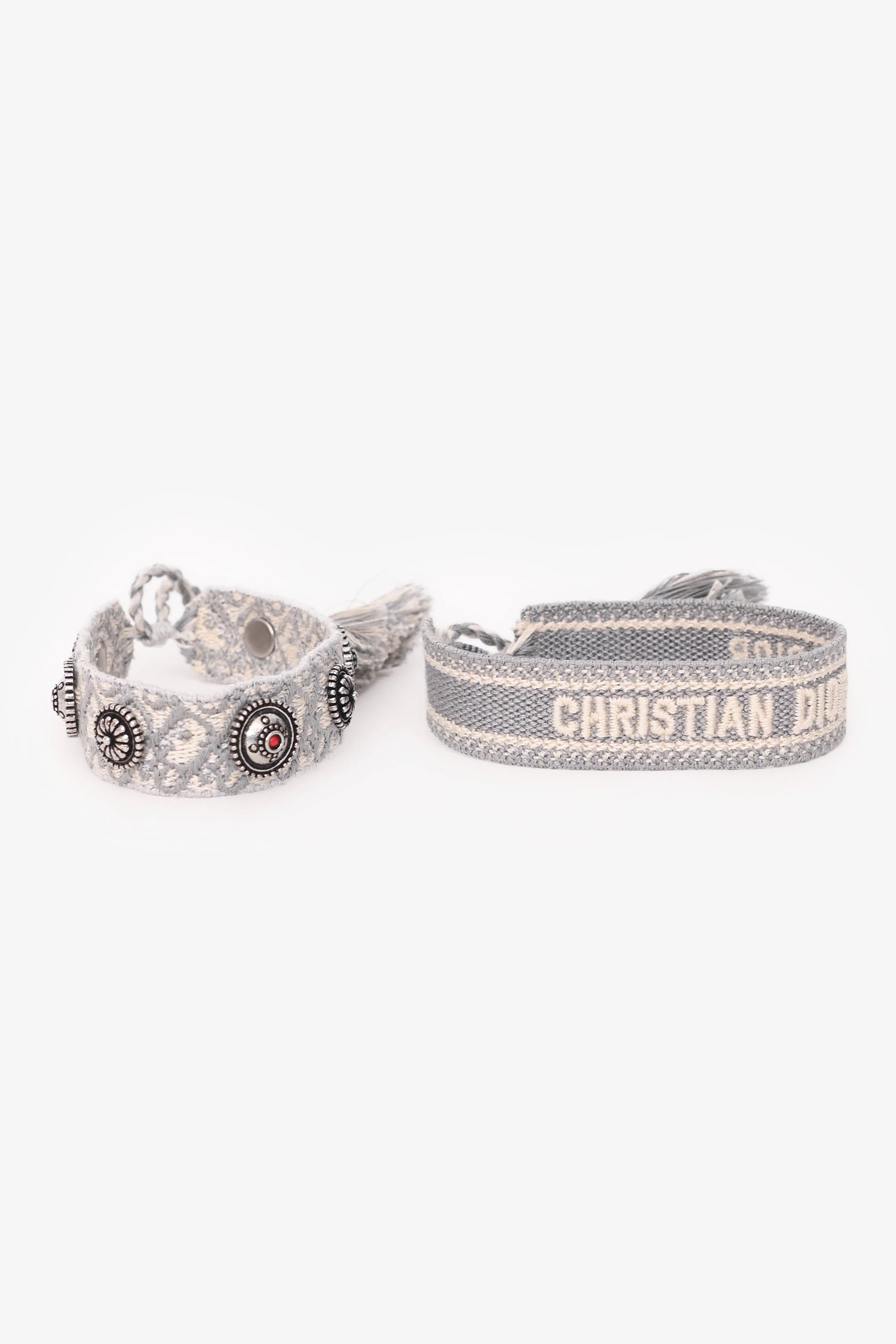Christian Dior Grey/White Friendship Bracelet Duo. Tonal stitching.