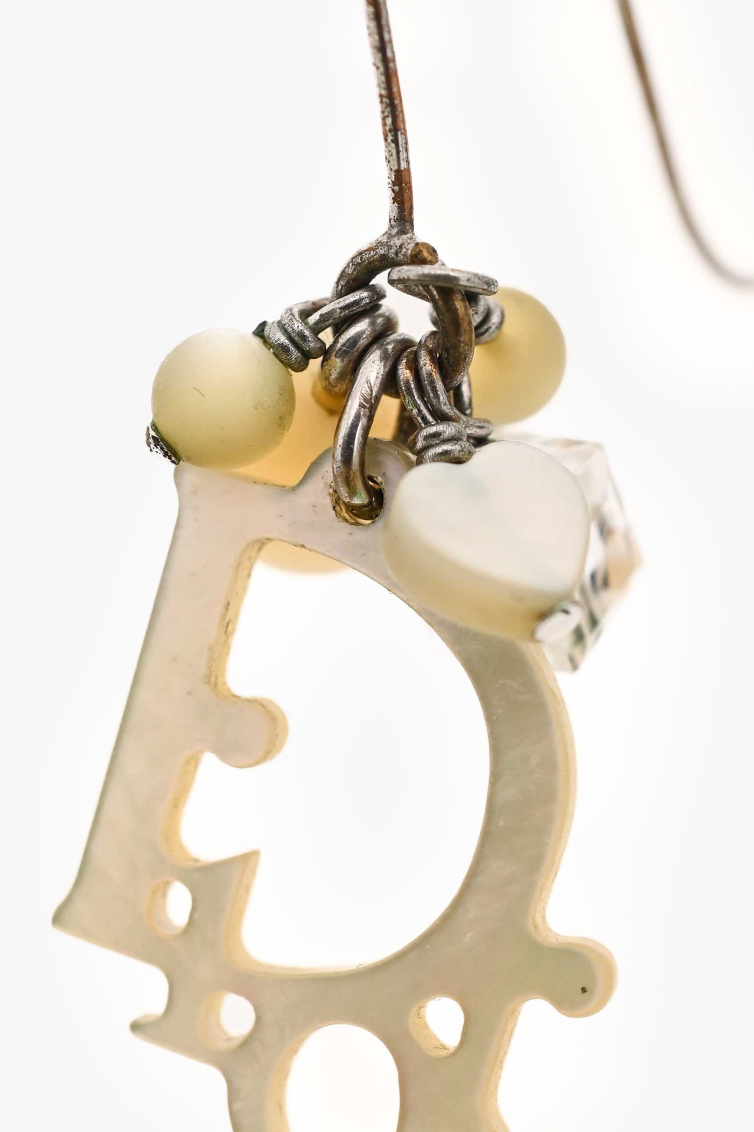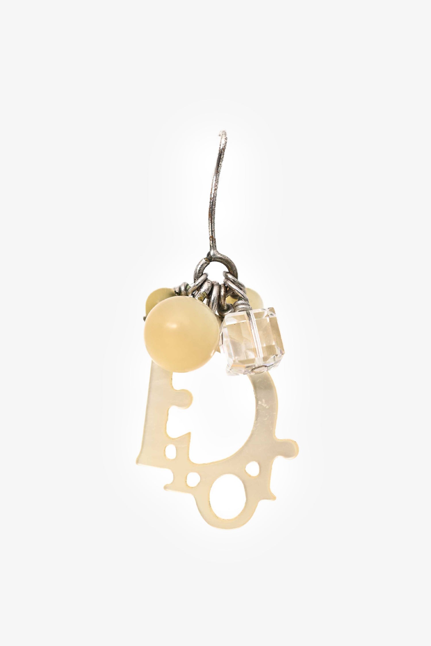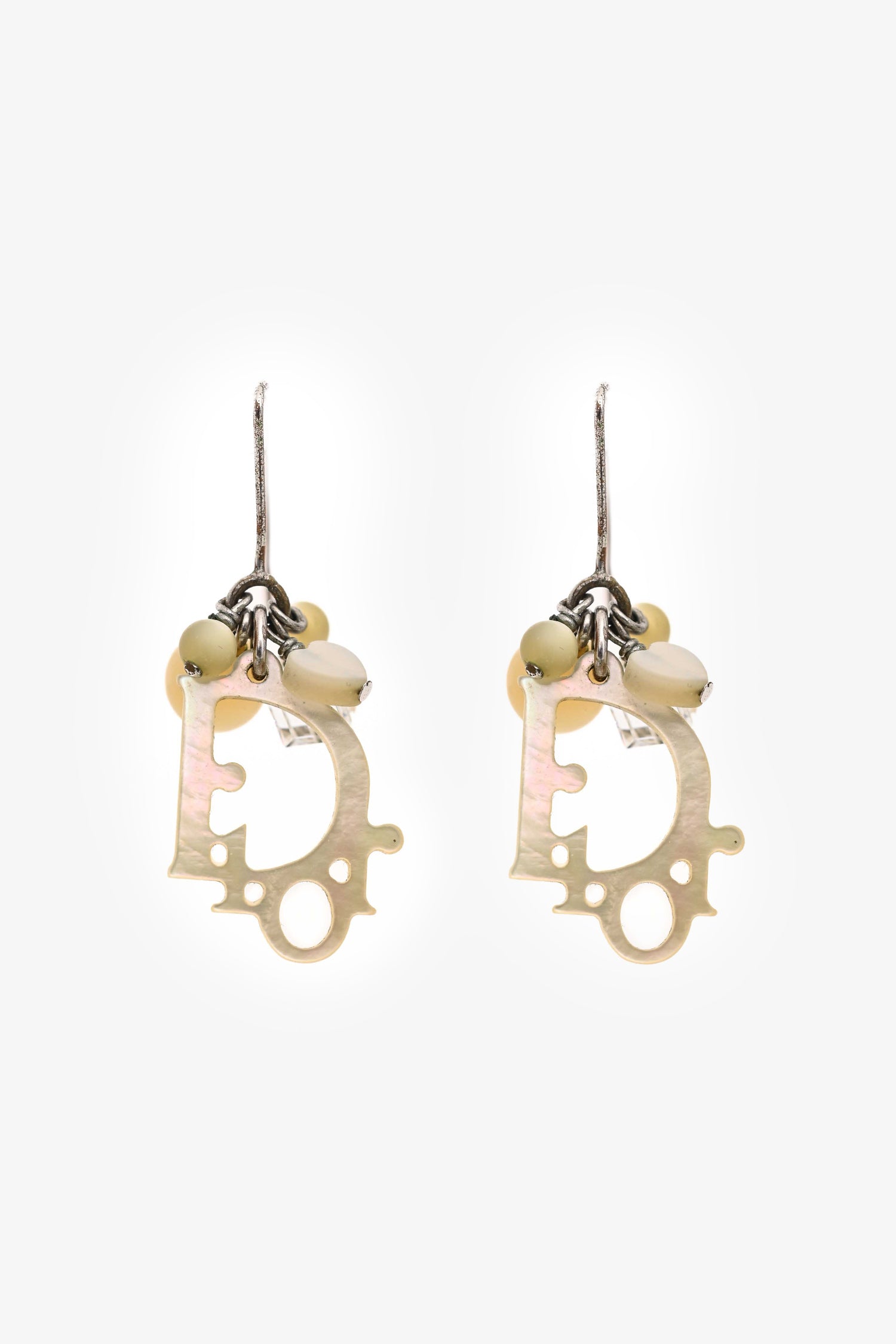 Christian Dior White Faux Mother of Pearl Bead Ear Pendants. Pull-through post. Silver-tone hardware.