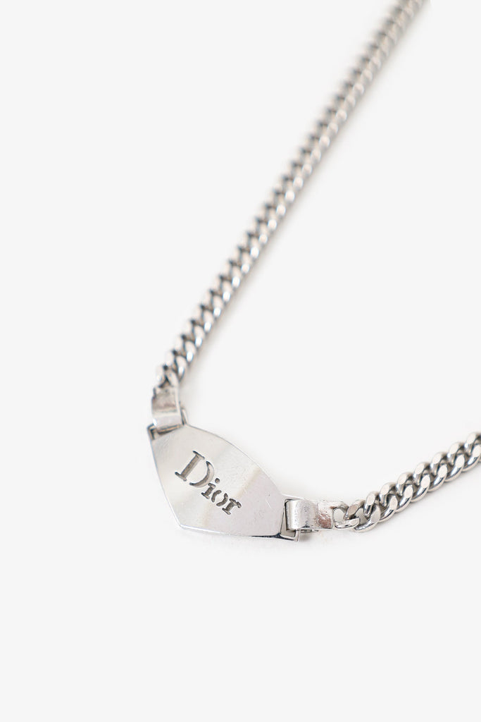 Christian Dior Silver Tone 'Dior' Tag Necklace