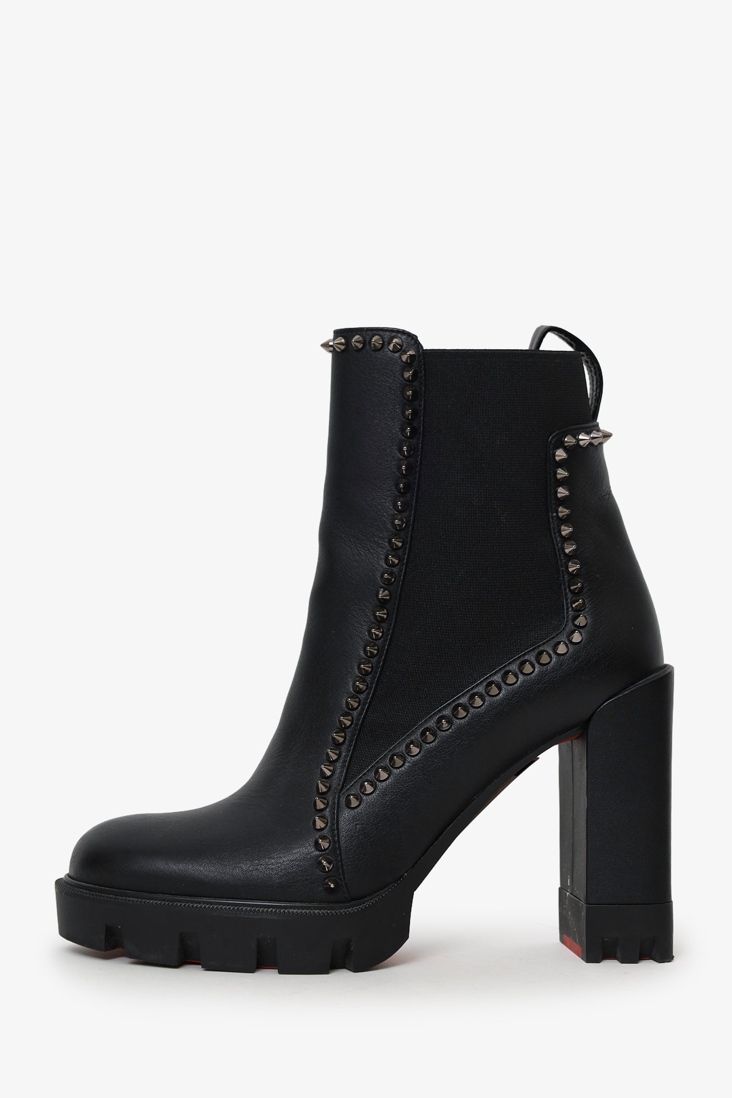 Christian Louboutin Black Leather Spike Lug Sole Heeled Boots Size 37