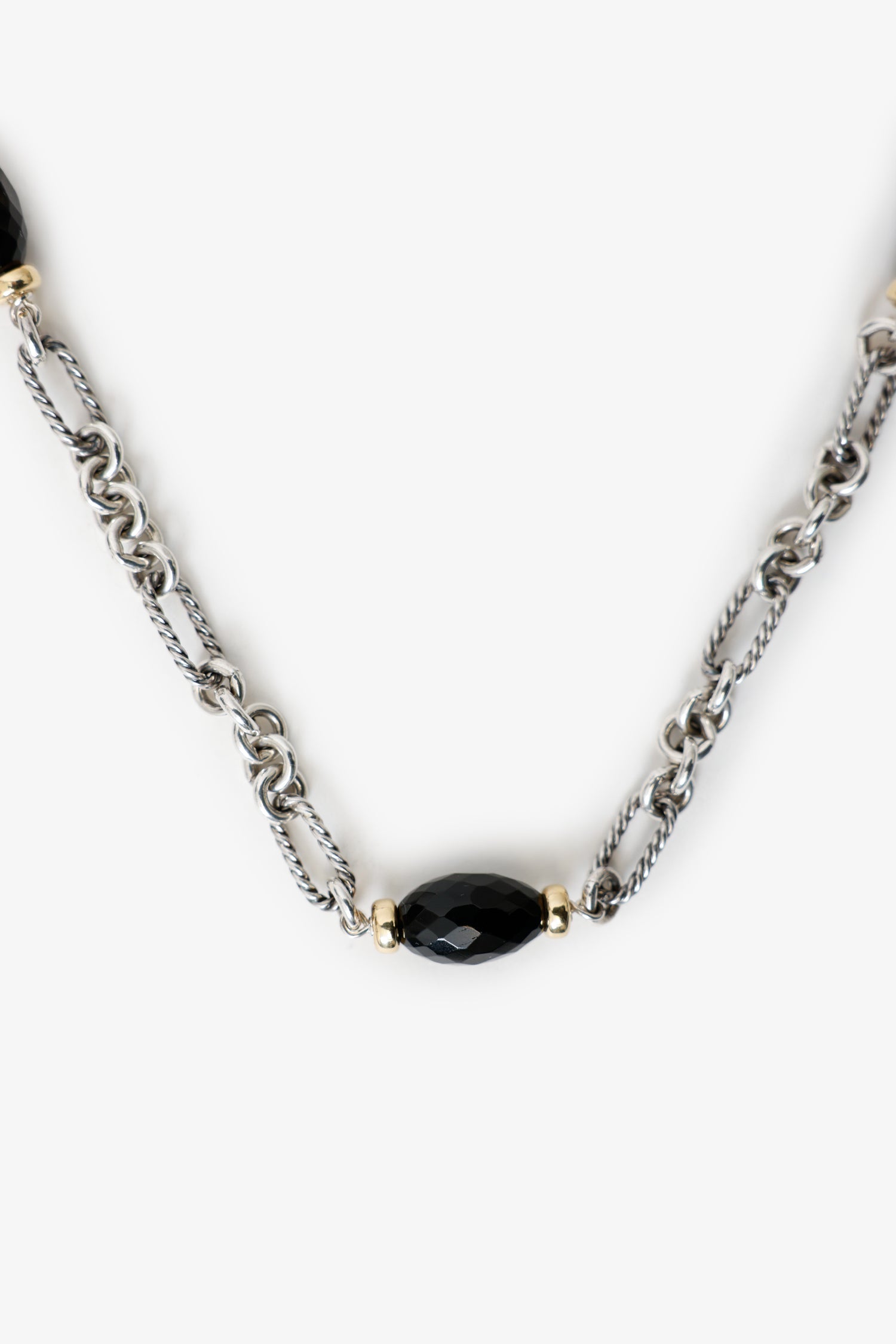 David Yurman Sterling Silver/18k Yellow Gold Onyx Chain Station Necklace. Rear clasp closure. Gold and silver-tone hardware.