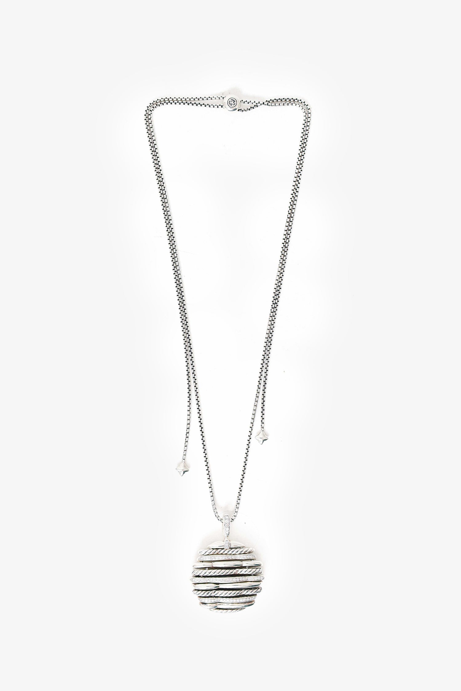 David Yurman Sterling Silver/Diamond Tides Pendant Necklace. Adjustable cinching closure. Silver-tone hardware.
