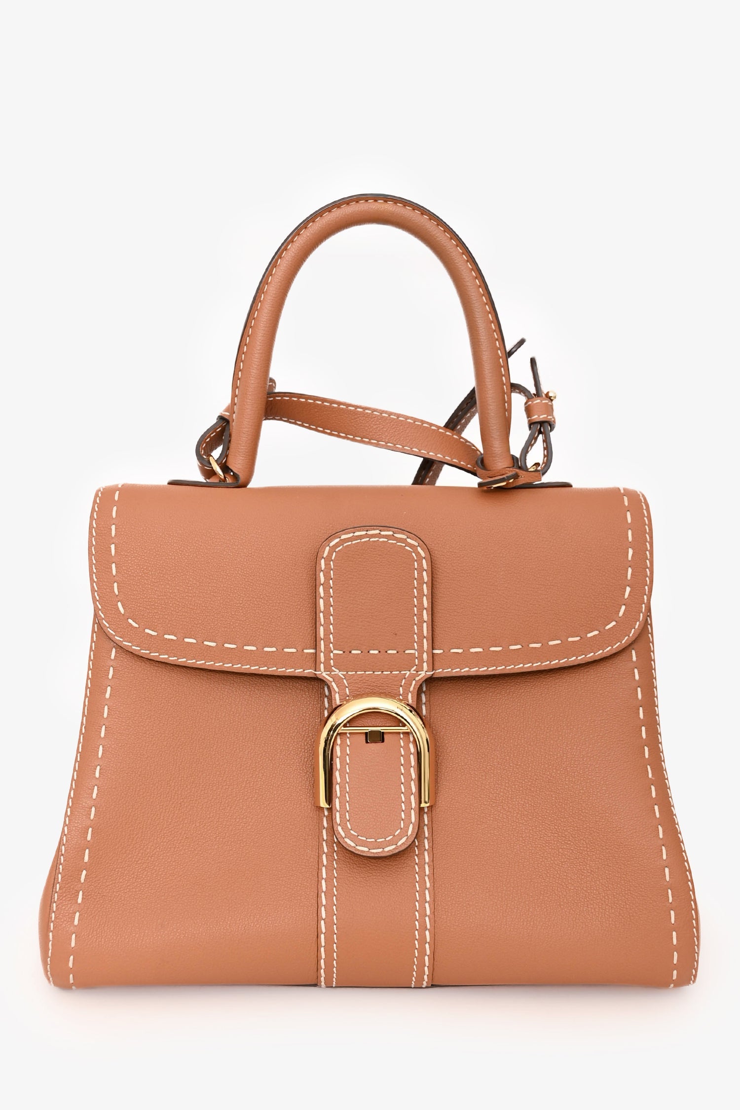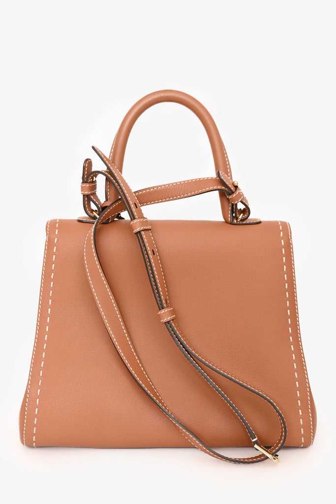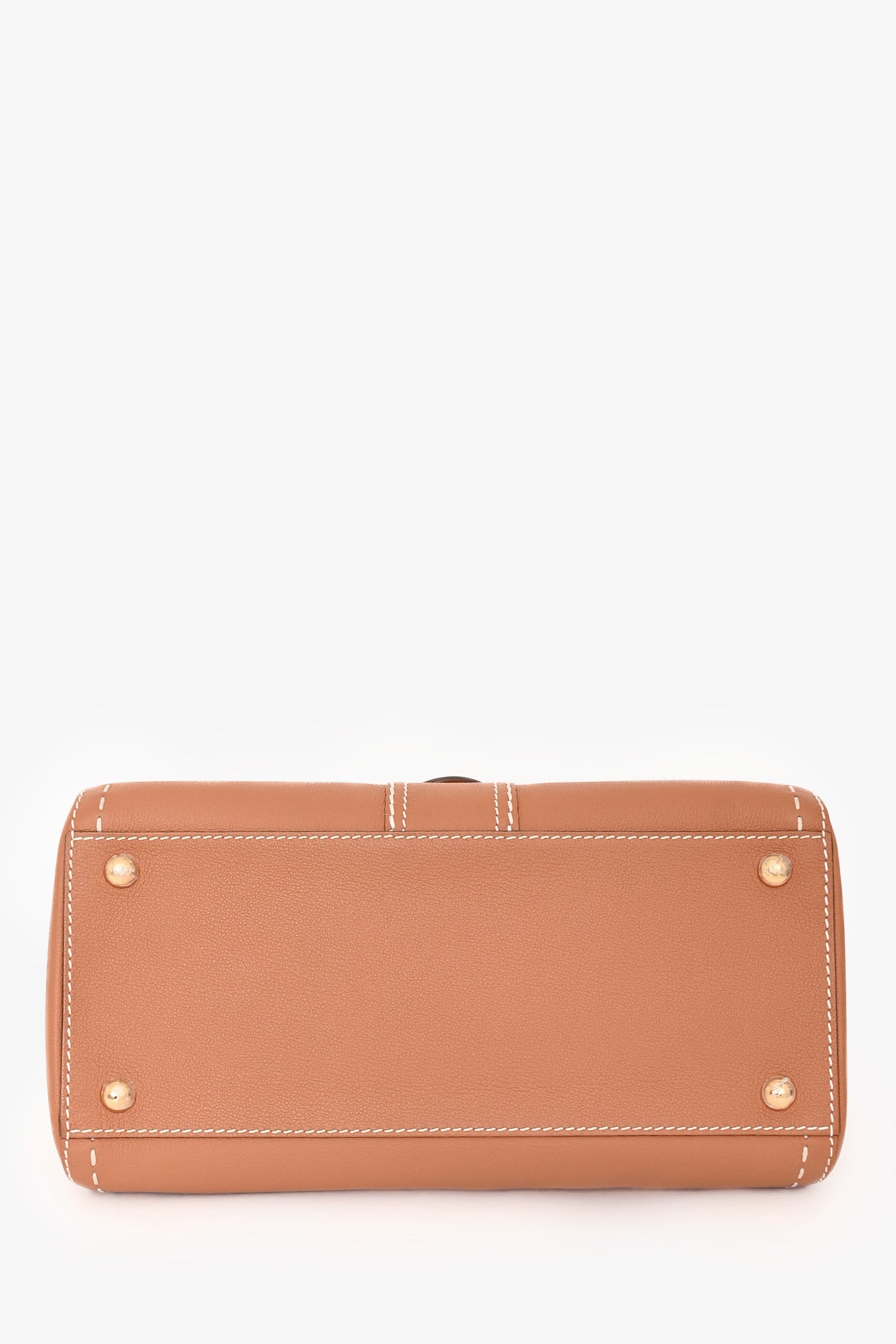 Delvaux Brown Leather Stitch Detail Le Brilliant MM Top Handle Gold Hardware with Strap