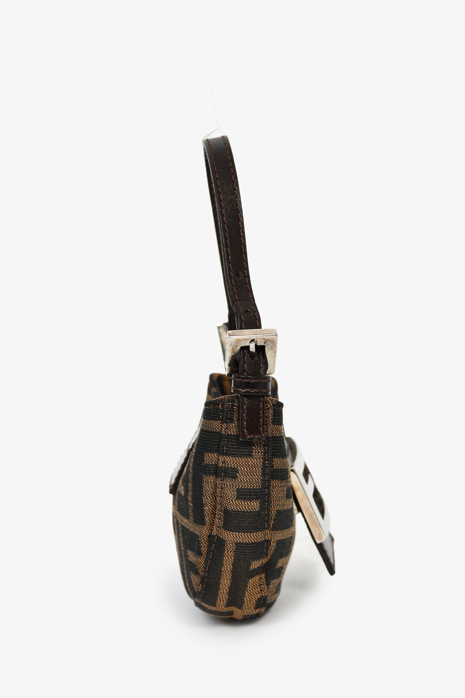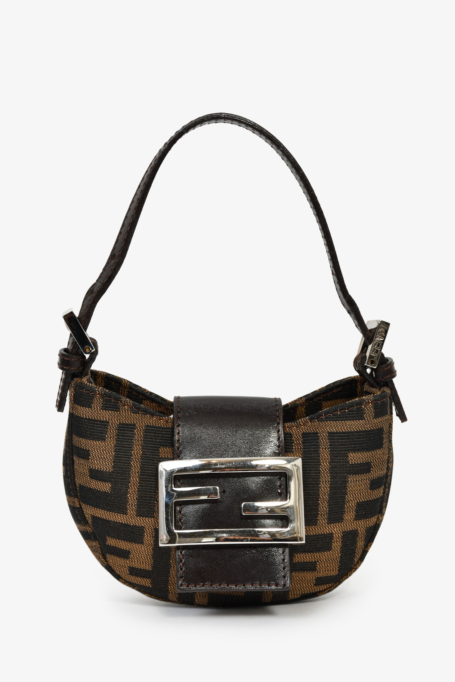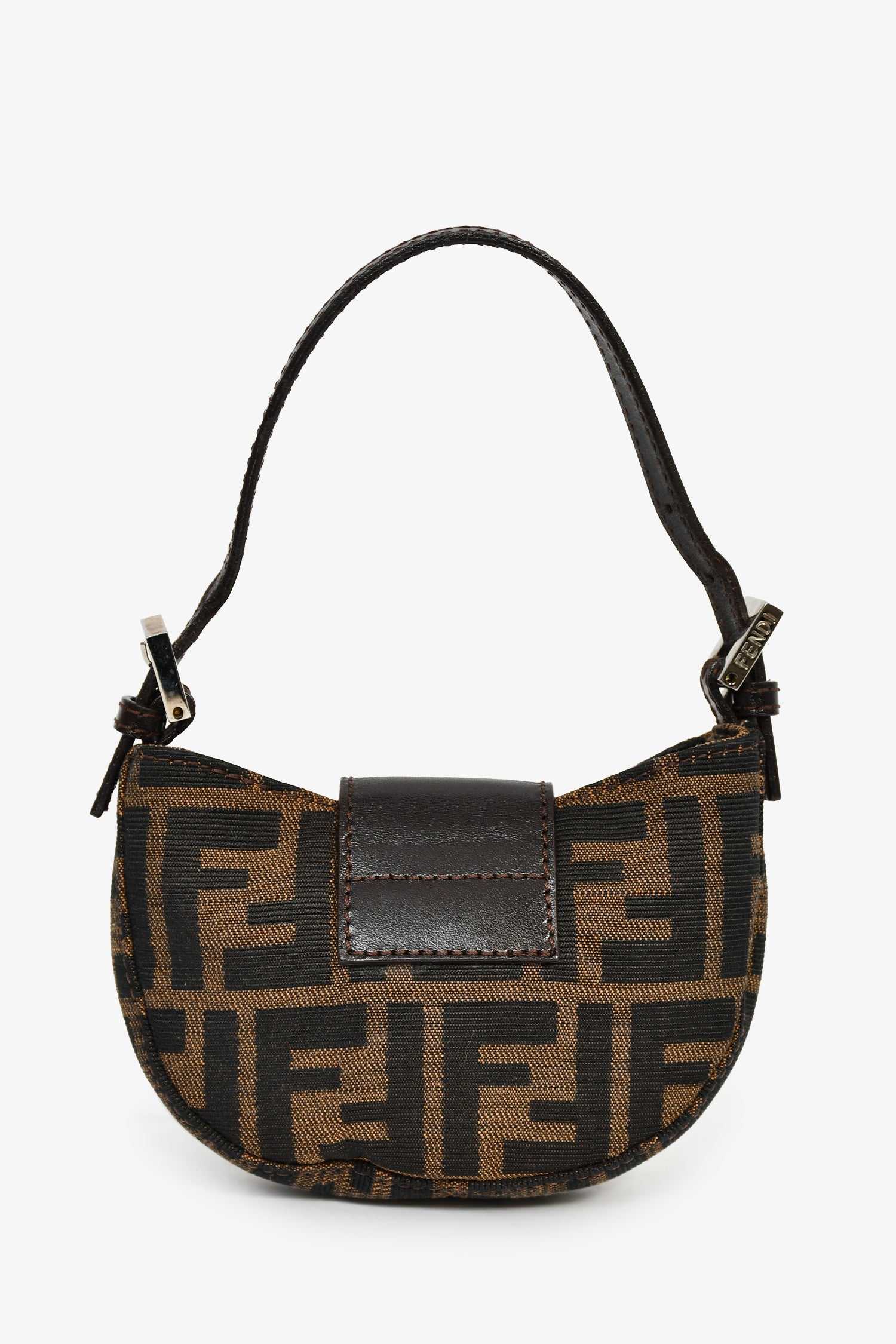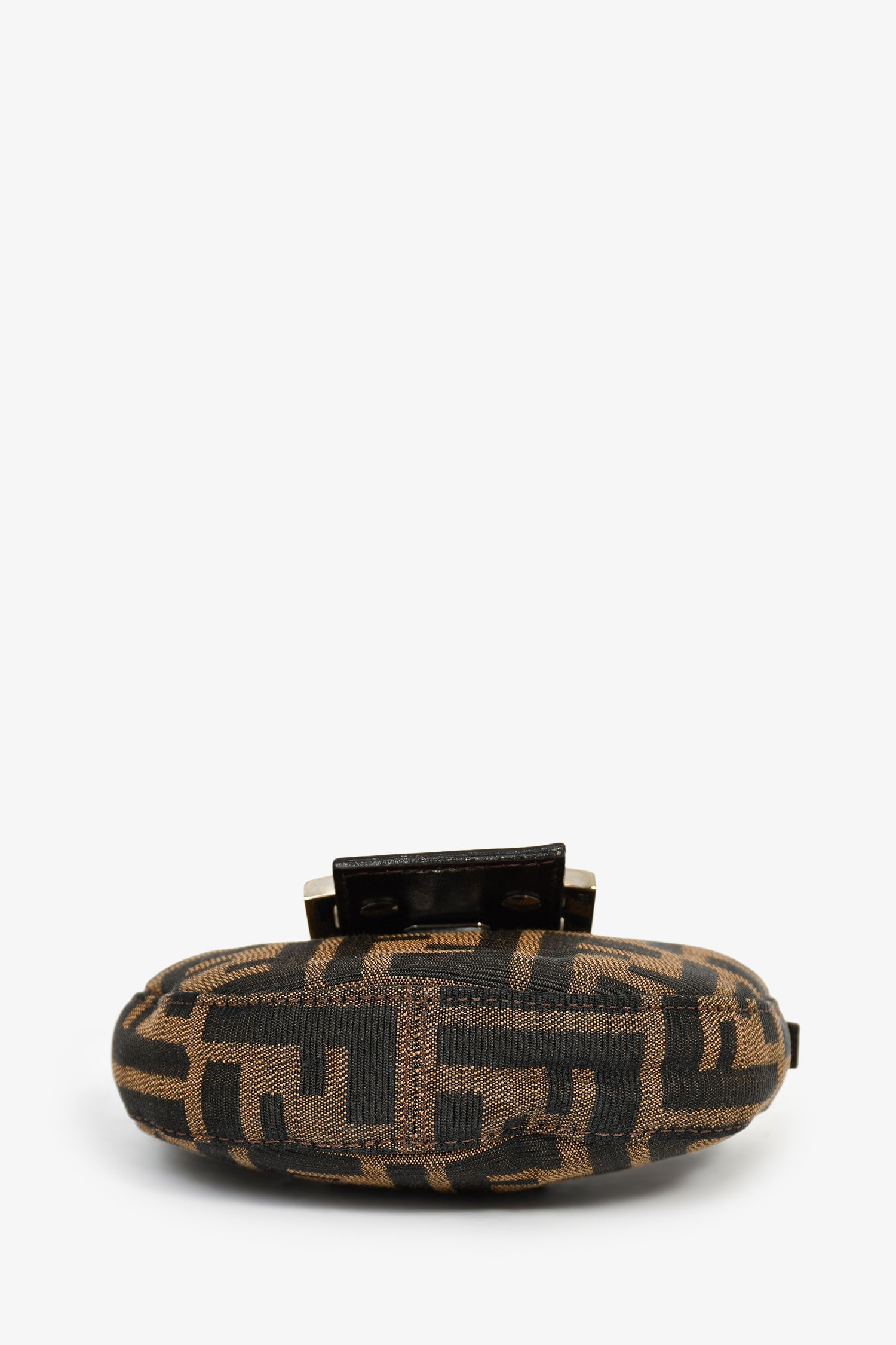 Fendi Brown Zucca Print Canvas Mini Half Moon Baguette Bag