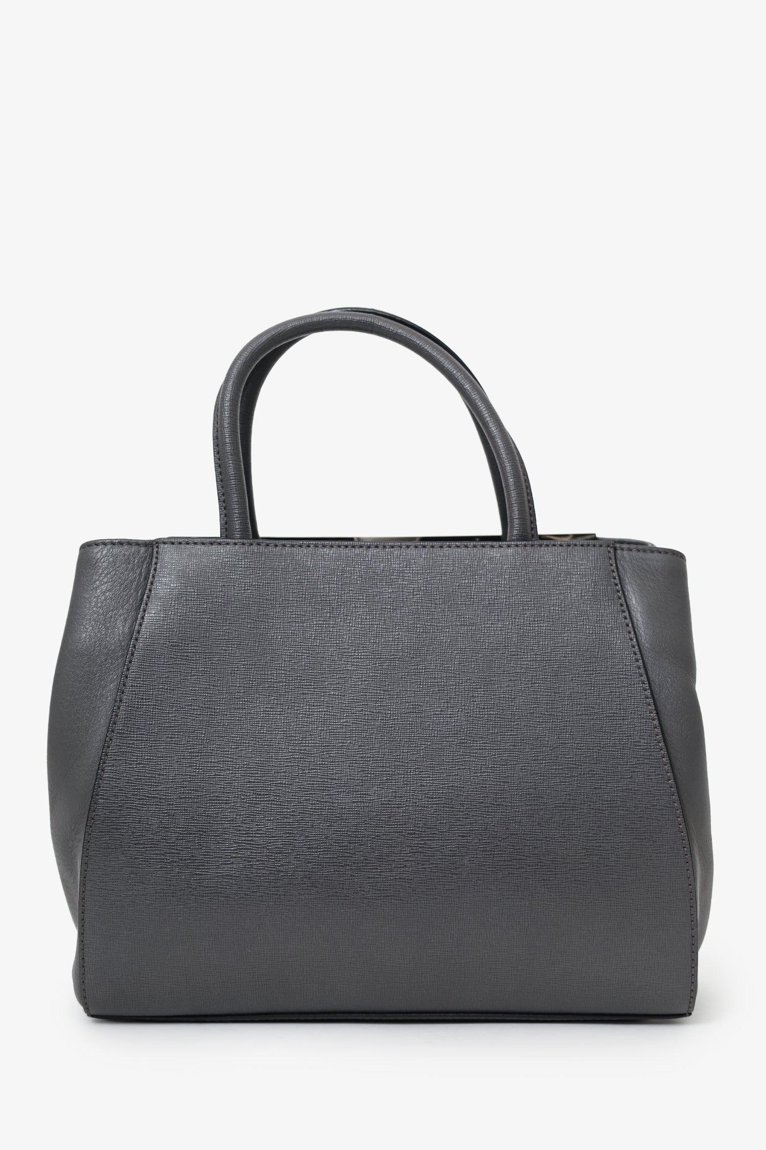 Fendi Grey/Blue Leather Pony Hair Petit 'Qu Tweet 2Jours' Tote. Interior clasp closure. Twin top handles. Adjustable and removable crossbody strap. Protective base studs. Lined interior with 3 pockets; 2 large open, and 1 zip-up. Removable bag tag. Silver-tone hardware. Tonal stitching.
