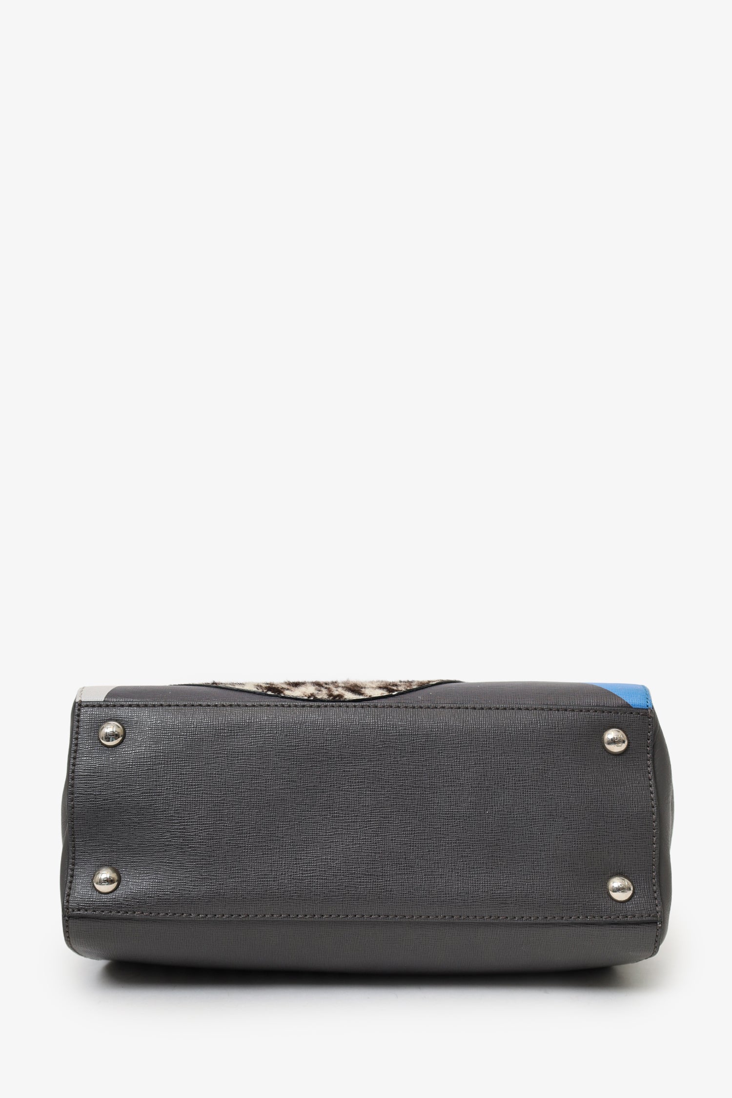 Fendi Grey/Blue Leather Pony Hair Petit 'Qu Tweet 2Jours' Tote