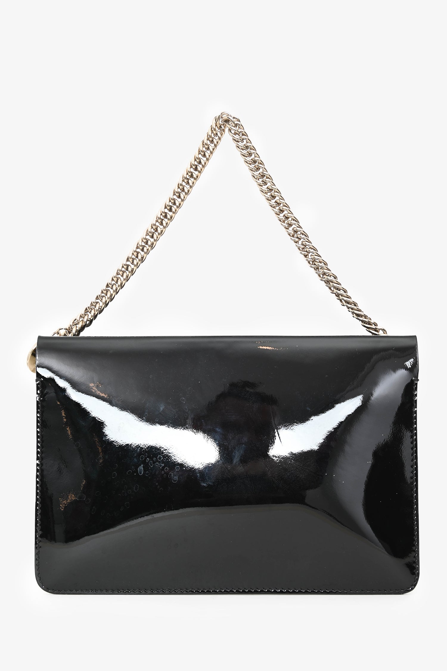 Givenchy Black Patent/Snake Print Leather Cross 3 Bag. Zipped top. Chain-link top handle and detachable crossbody strap. Suede-lined interior. 2 compartments: 1 zip and 1 open with a snap closure. Gold-tone hardware. Tonal stitching.