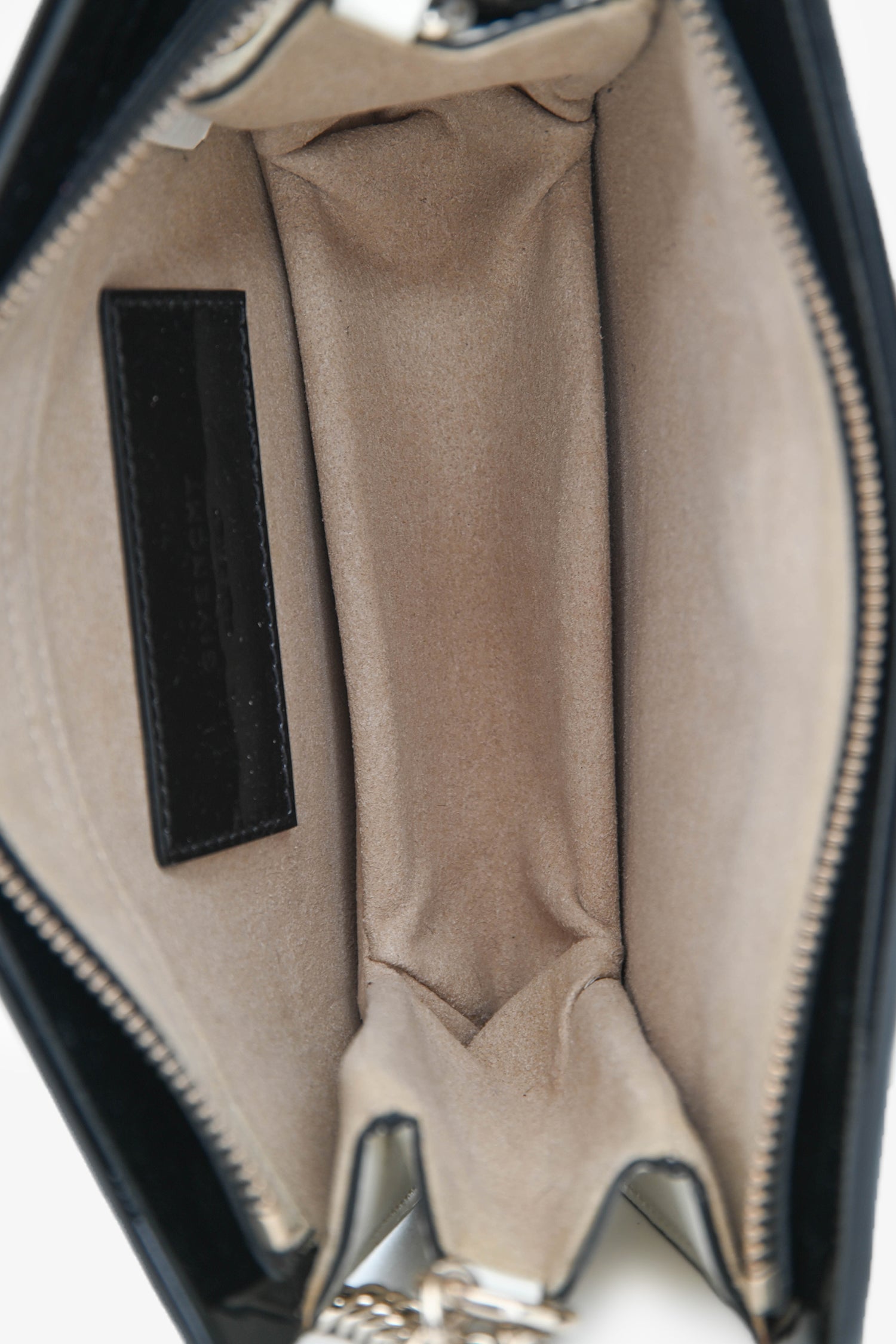 Dimensions: 8.5” width x 5.75” height x 1.5” depth x 5” handle drop x 20.5” strap dropCondition: This item is in good pre-loved condition with hairline marks and tarnish on the hardware. Stitch cracks on the bottom. Surface and water marks on the exterior.