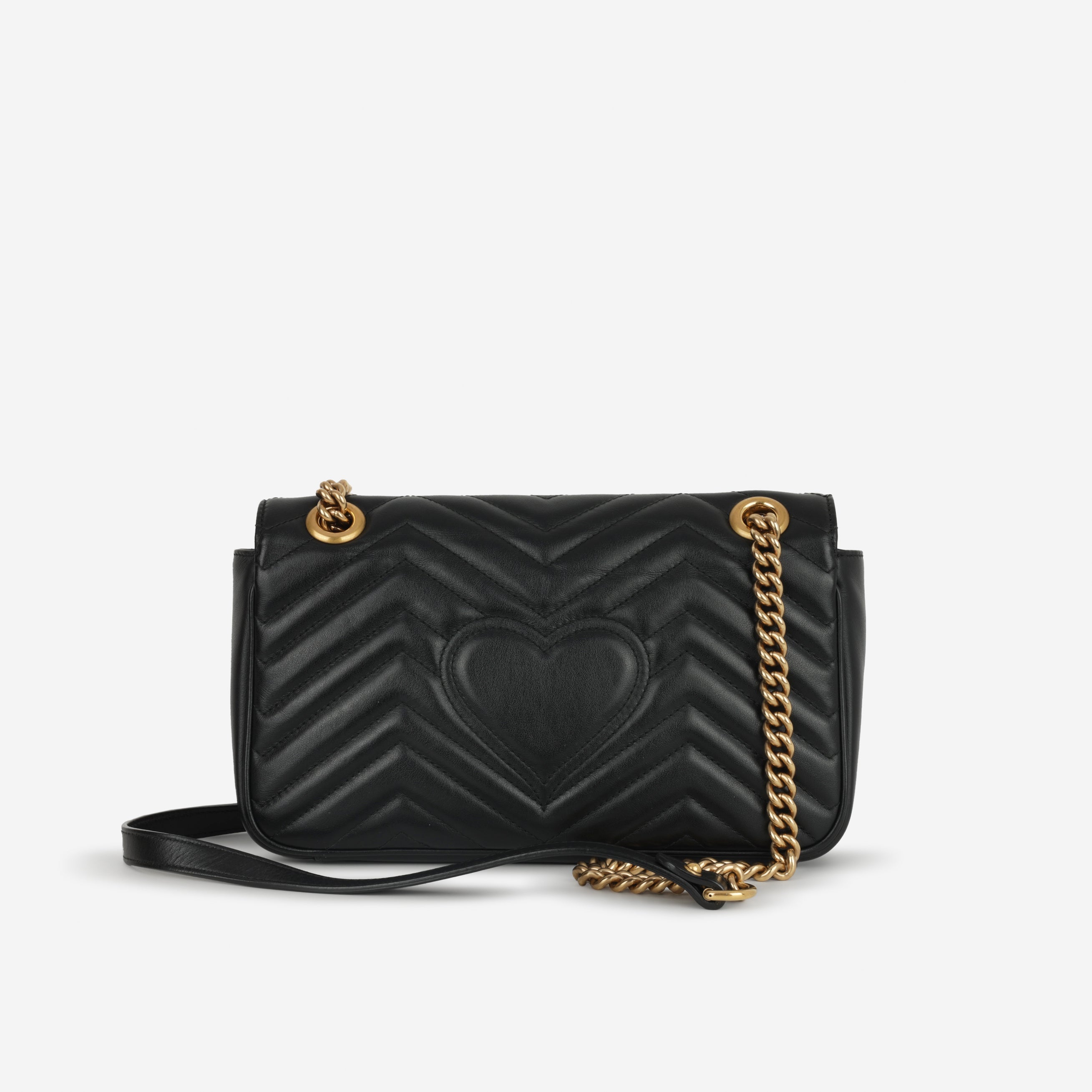The Gucci Marmont Medium Bag in black calfskin is a timeless icon of modern luxury and sophistication. Its leather exterior, paired with gleaming gold-tone hardware, creates a striking balance of elegance and boldness. Perfect for day-to-night transitions, this medium-sized bag offers practicality without compromising on style.