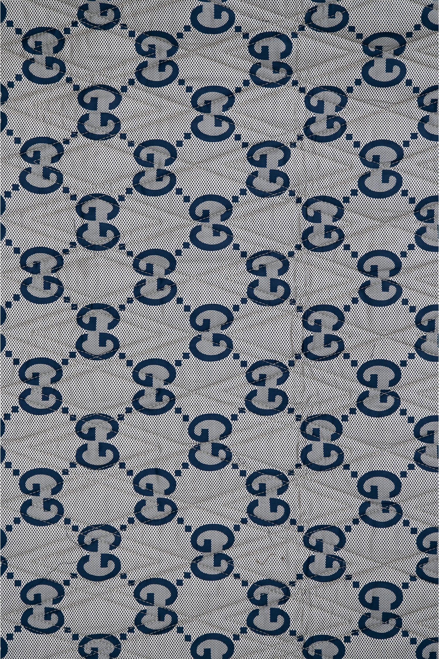 Gucci Beige/Blue Double-Sided GG Quilted Cotton Blanket. Finished edges. Tonal stitching.