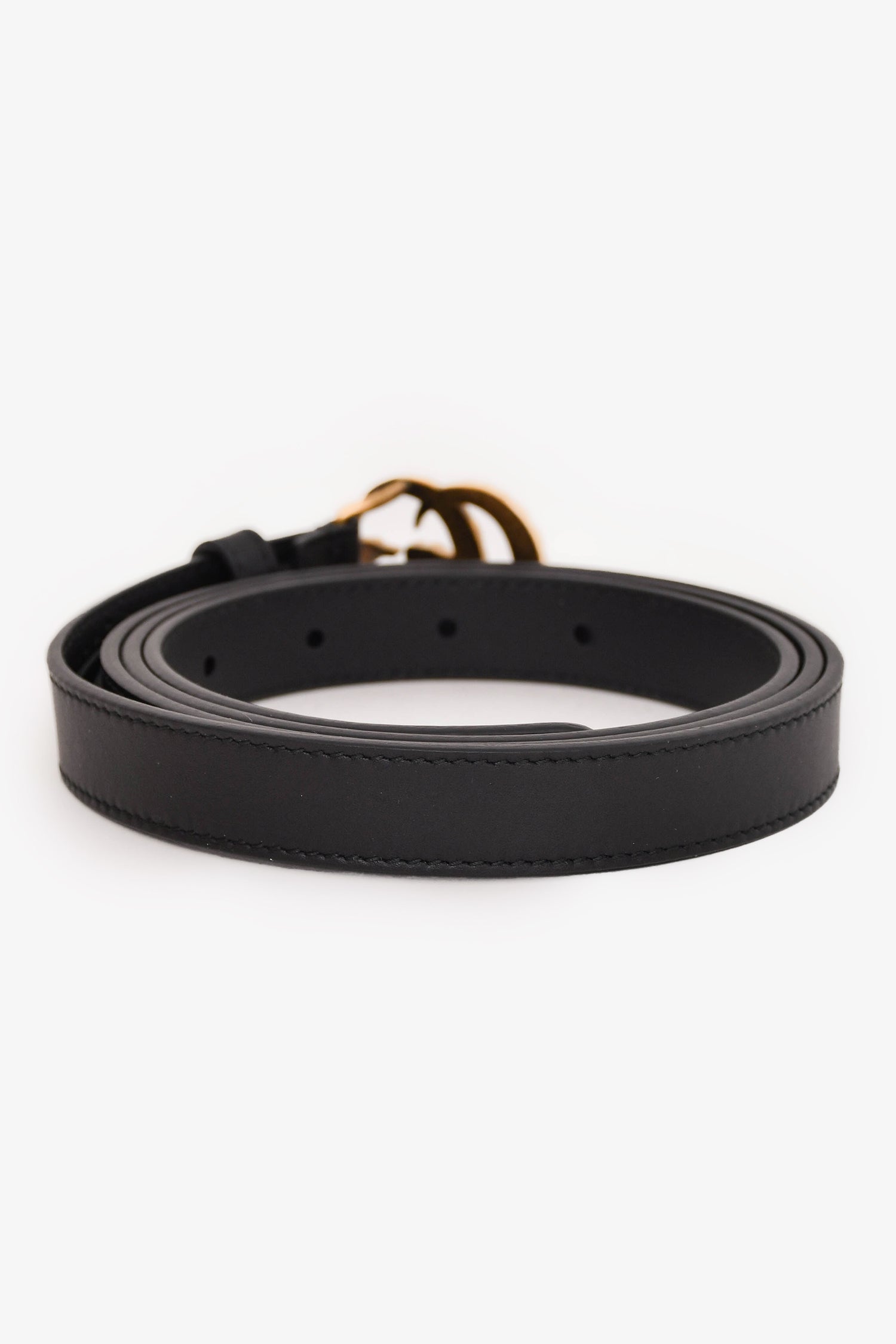 Gucci Black Leather Pearl GG Thin Marmont Belt Size 110/44
